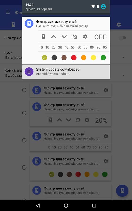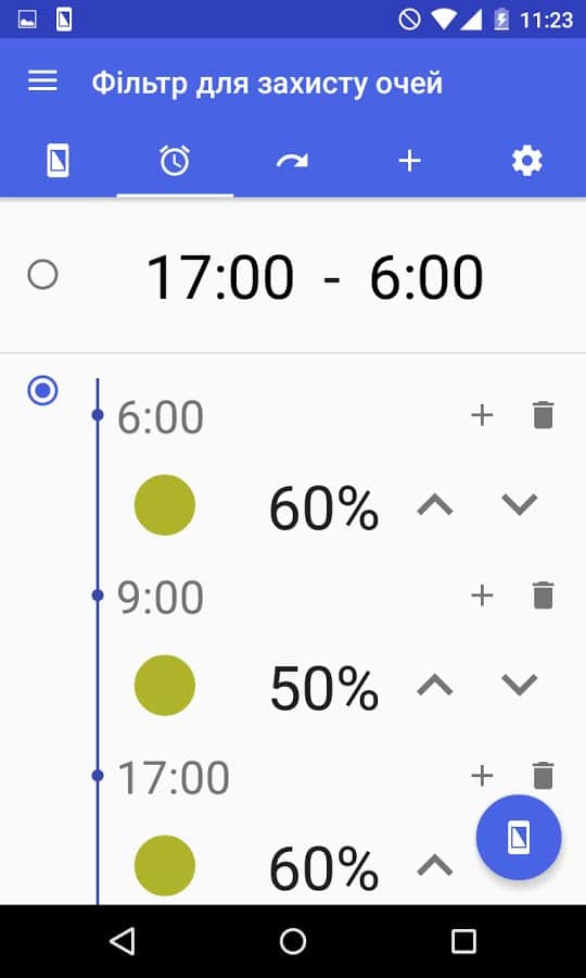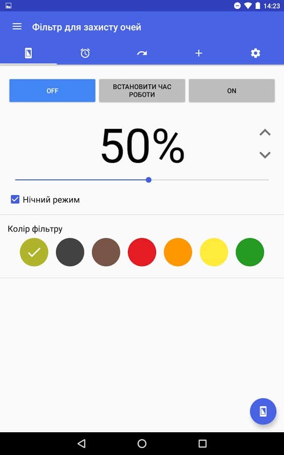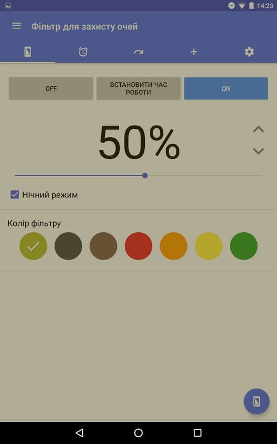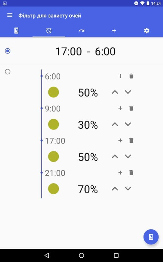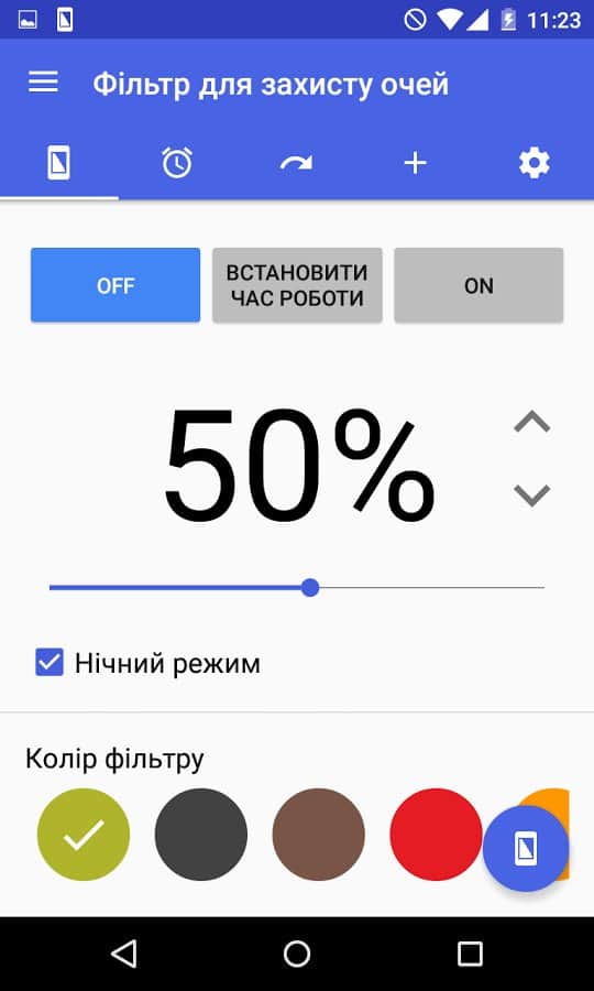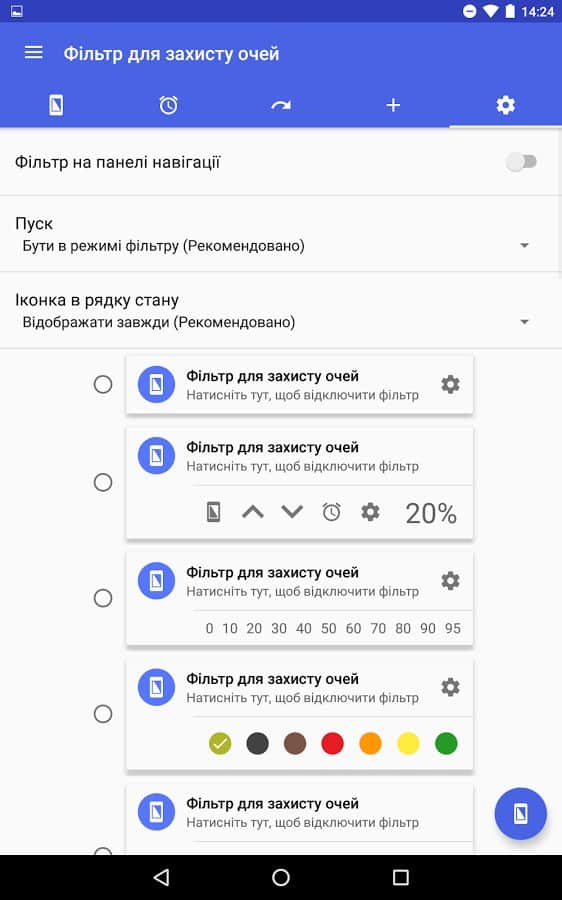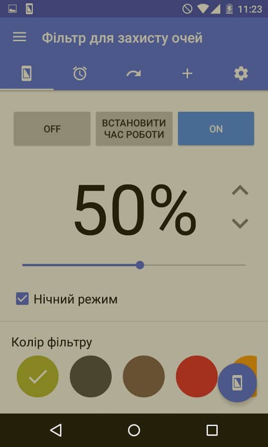 El objetivo de esta aplicación está en su nombre: cambia la retroiluminación para reducir la fatiga ocular. Esta función es útil para aquellos que pasan mucho tiempo mirando la pantalla de su smartphone, especialmente en la oscuridad y antes de dormir. Será especialmente útil al ver redes sociales, navegar por la web o leer textos. Activar este filtro ayudará a eliminar la tensión de los ojos e incluso mejorará el sueño. Al mismo tiempo, por paradójico que parezca, sentirás una diferencia especial en los colores. En la configuración, puedes ajustar la opacidad del filtro, su color y activar el cambio automático.