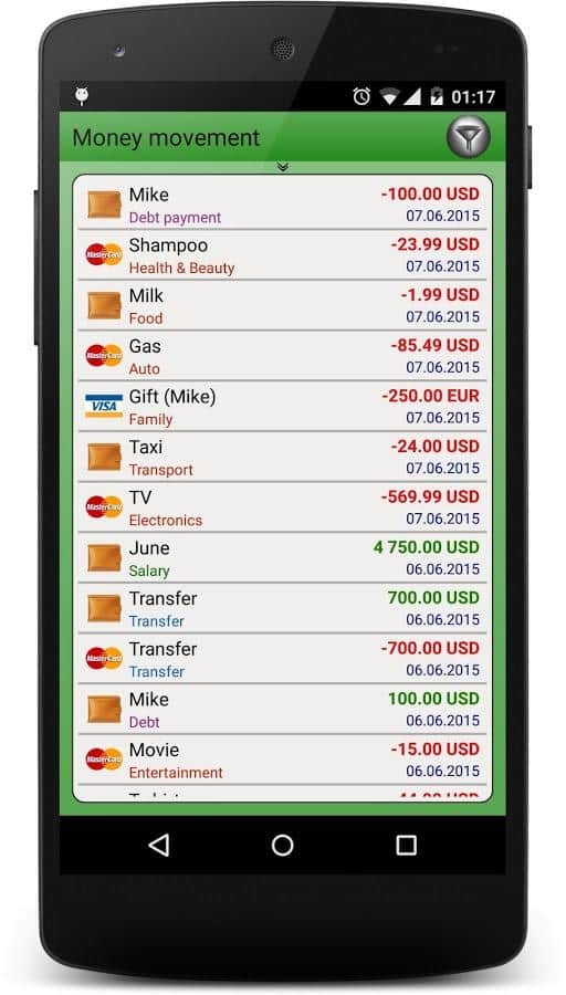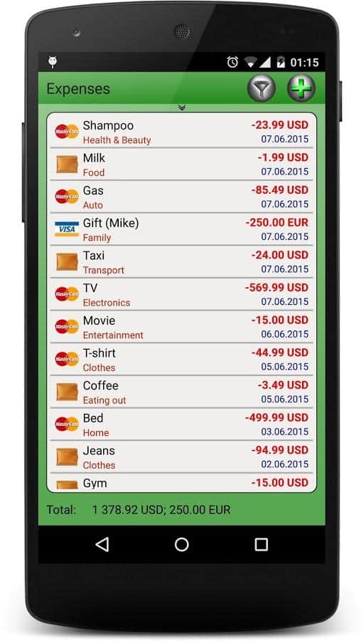 Administrador de Finanzas - Mantén un seguimiento de tus finanzas y contrólalas con la ayuda de esta simple app. La interfaz fácil de usar y la división en categorías te ayudarán a navegar por tus finanzas, incluso se te mostrará cómo estás pagando, con tarjeta o en efectivo. Los detalles exactos de cada operación financiera, y el cálculo automático y la planificación de gastos y beneficios para el futuro te ayudarán a gestionar las finanzas en general.