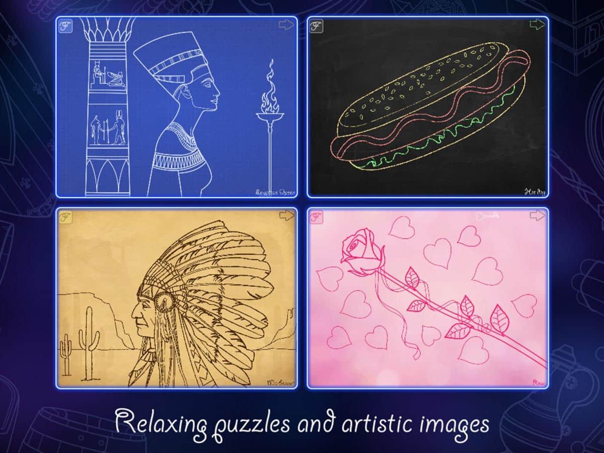 Find–the–Line – un juego de rompecabezas adictivo para IOS donde crearás algunas imágenes de los demás. En este juego tu tarea es hacer imágenes hechas de cuerdas para que se mezclen con otras imágenes. Desenreda uno o más hilos y crea utilizando otros dibujos. Con cada nuevo nivel, la complejidad del juego aumentará y tendrás que esforzarte para pasarlos todos. En el juego encontrarás más de 15 temas diferentes, elige el tuyo y comienza a crear. Crea pinturas y disfruta de tu tiempo libre. Desenreda todos los hilos en las imágenes y crea pinturas únicas. En el futuro encontrarás la colección de llaves y estrellas.