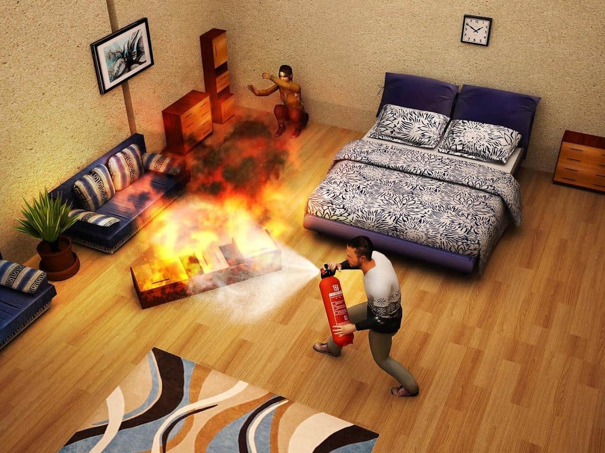 Historia de Escape del Fuego 3D - Aunque al principio es un poco confuso por qué, en lugar de confiar en el trabajo de un bombero, te lanzas a edificios en llamas y comienzas a hacer heroísmos. Pero luego, si no piensas en ello, podemos decir que el juego es muy interesante, y además tiene una trama. Aunque está dividido en niveles, algunos de ellos son un poco más largos, otros más cortos. Pero en general son bastante fascinantes y atraparán a cualquiera. Correr, apagar el fuego, realizar tareas y romper ventanas con un martillo es bastante interesante.