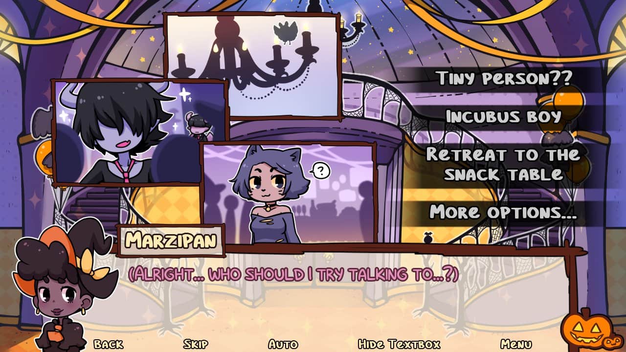El Primer Beso en una Fiesta Terrible es una gran novela visual en la que aprenderás la historia de una bruja, que nunca ha sido besada. ¡Pero hoy hay una oportunidad para cambiar todo! Organiza la velada, encuentra amigos o un baile de graduación, elige una razón y un escenario apropiado, crea una atmósfera de comodidad y confianza, y establece condiciones laborales cómodas. Deja que sea ideal para que recibas una recompensa y simplemente puedas divertirte en la fiesta. Crea una imagen única de tu personaje y ve a la fiesta.