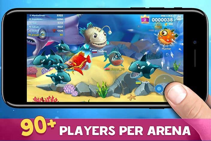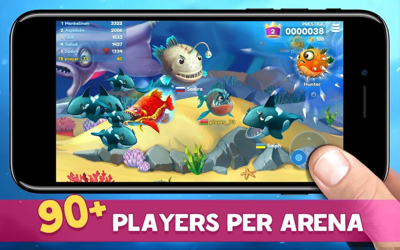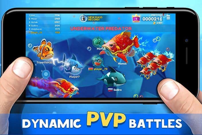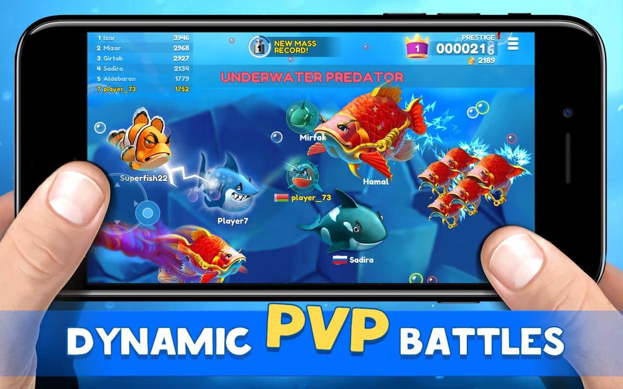 Fish Now: Juego io en línea & PvP – Batalla – toma el control de uno de los peces del juego y hazlo el más fuerte del océano. En este juego te encontrarás en las profundidades del océano, donde nadan una variedad de peces y tu tarea es recolectar una variedad de alimentos y bonificaciones y luchar contra los competidores. Cada pez en el juego tiene sus propias habilidades y capacidades únicas que se irán desbloqueando gradualmente a lo largo del juego. Nada a través de las vastas extensiones del océano y come alimentos para aumentar de tamaño. Lucha contra peces fuertes y derrotálos. Desafía a los más fuertes y conviértete en el mejor, ascendente en las clasificaciones.