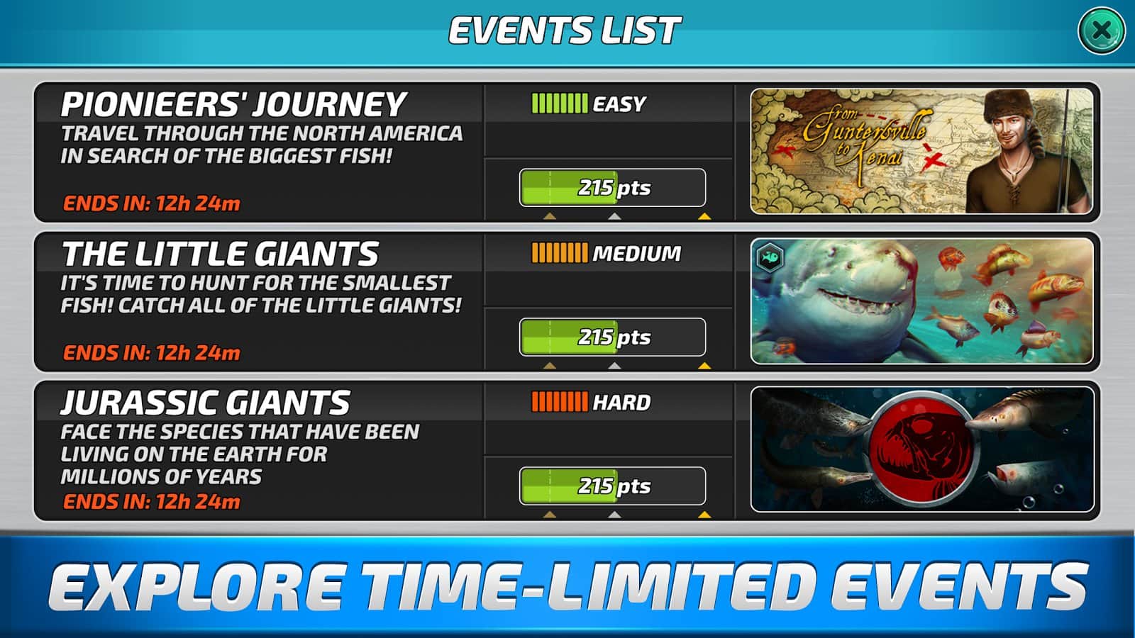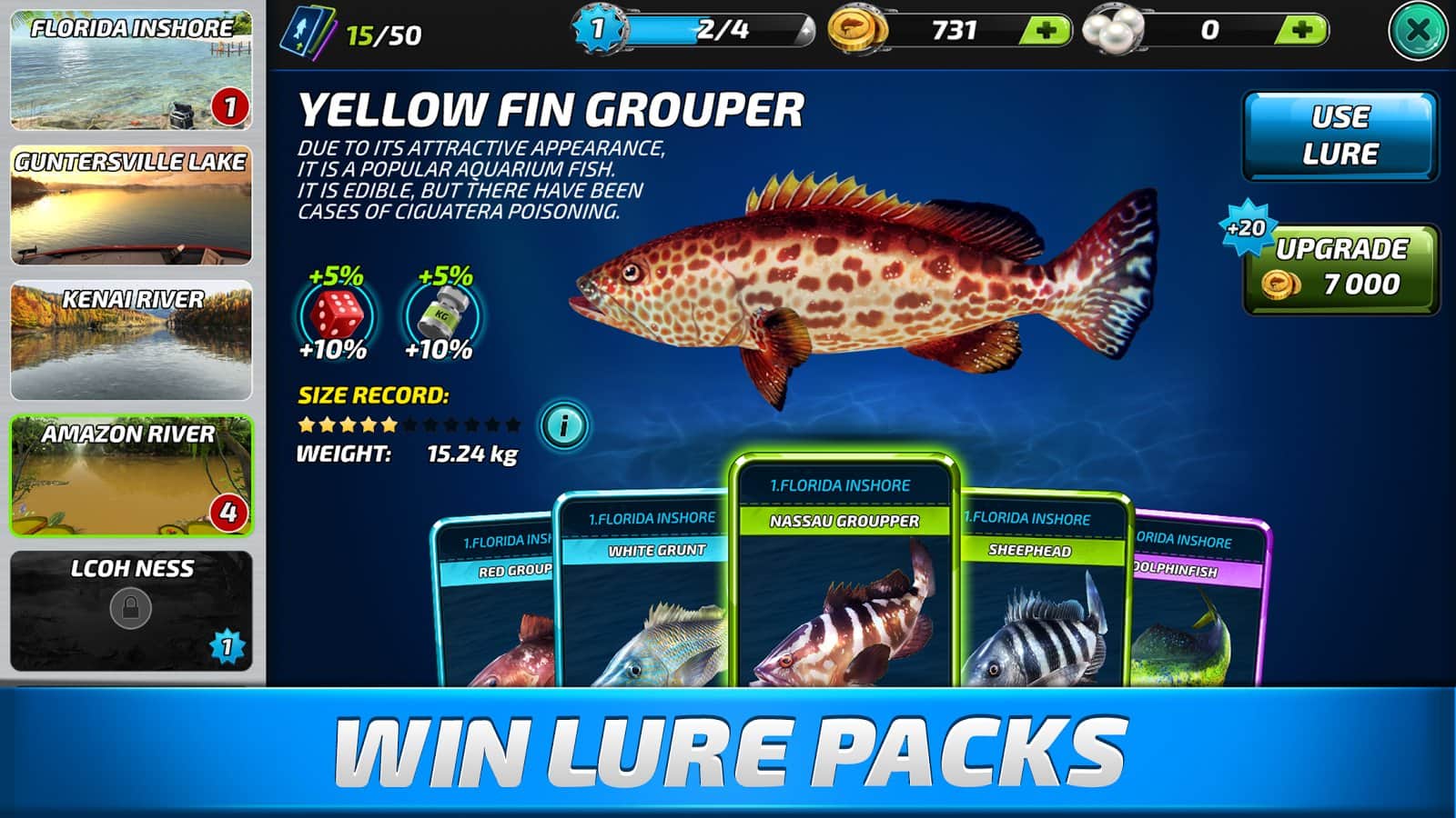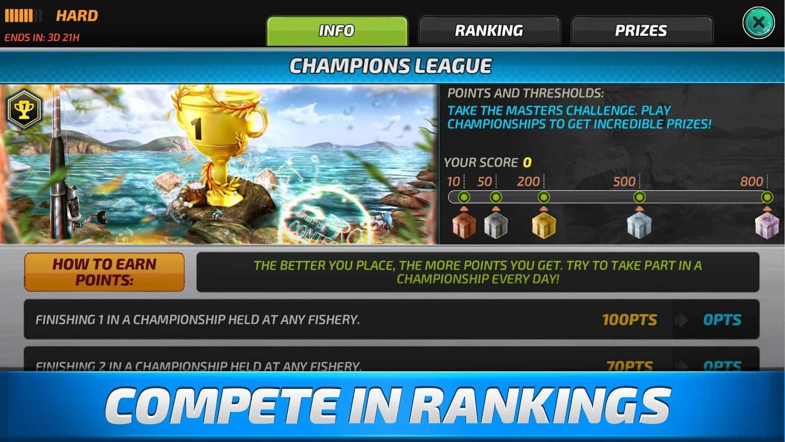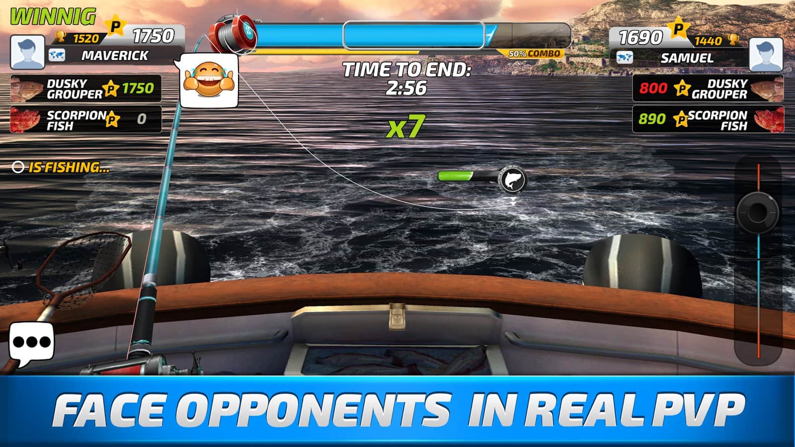Clash Fishing: Juego de Captura de Peces. Simulador de pesca móvil 3D para Android, donde visitarás lugares magníficos donde podrás pescar. Este juego es perfecto para aquellos jugadores que son aficionados a la pesca, las aventuras emocionantes, las competiciones y la naturaleza. Participa en campeonatos y torneos de pesca y gana puntos para obtener los primeros lugares. Juega con amigos y otros jugadores en modo PvP y sé más rápido y mejor que los demás jugadores para obtener recompensas exclusivas. Visita muchos y variados lugares en el planeta donde se capturan peces exóticos y utiliza una variedad de aparejos y cebos para atraparlos. Recoge potenciadores y cartas con equipo de pesca y únete al club de pesca élite para obtener trofeos valiosos.