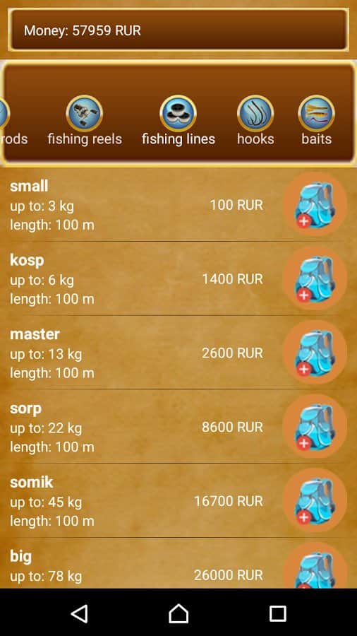 Pesca Móvil - Gran pesca en línea en Android, en la que puedes competir con otros jugadores. Todo en el juego 10 cuerpos de agua diferentes, más de treinta cebos para atrapar ochenta especies de peces, tanto marinos como de agua dulce. También hay una gran variedad de equipo. El juego tiene un diseño muy hermoso con una tienda en línea, tabla de clasificaciones y torneos en línea.
