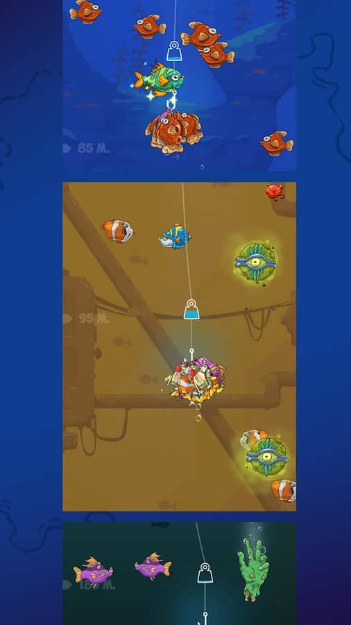 En Fishing King: Caza de Peces, necesitarás mostrar todas tus habilidades y agilidad como pescador. Aquí, puedes atrapar los peces más inusuales y exóticos que se convertirán en tus trofeos. En el juego, te encontrarás no solo con peces, sino también con tiburones amenazantes, robots, dragones e incluso dioses antiguos. Solo un verdadero maestro de la pesca puede superar tales obstáculos y atrapar la presa más valiosa. ¡Conviértete en un verdadero Rey de la Pesca!