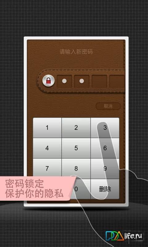 Función de acceso a la aplicación con una contraseña de 4 dígitos (si ingresas la contraseña incorrecta 5 veces, se borrarán todos los datos).