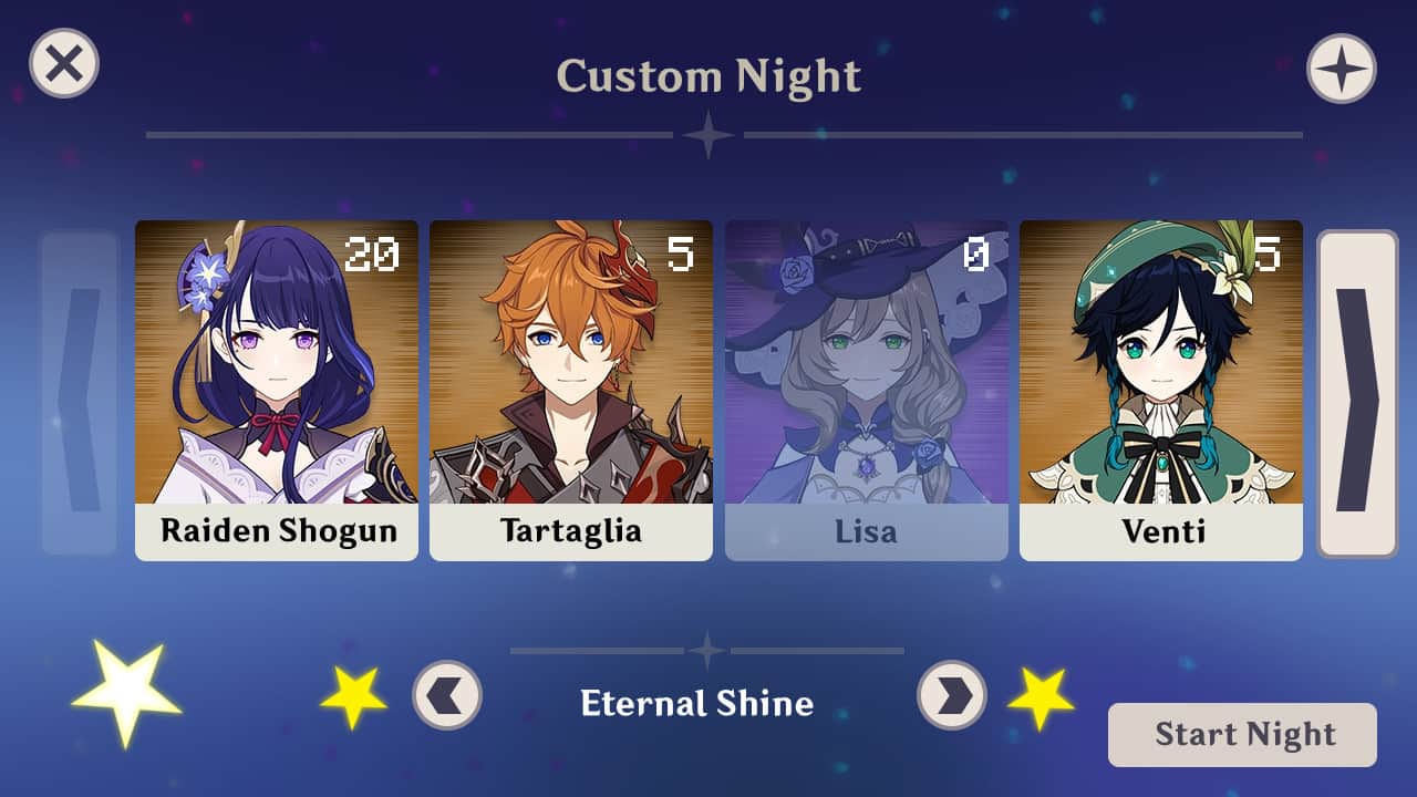 Five Nights at Raiden's es un proyecto de fans que combina el universo de Genshin Impact con la mecánica de Five Nights at Freddy's. Tendrás que sobrevivir durante cinco noches, luchando contra personajes como Raiden Shogun, Tartaglia, Lisa y Venti en un lugar misterioso hasta las 6 AM. Tienes puertas, luces y una tableta con cámaras, pero lo más importante es tu energía. Úsala sabiamente para sobrevivir. Comete un error y aterradoras sorpresas te estarán esperando. Después de las 6 AM, nuevos desafíos te esperan... en lo profundo de la tierra.