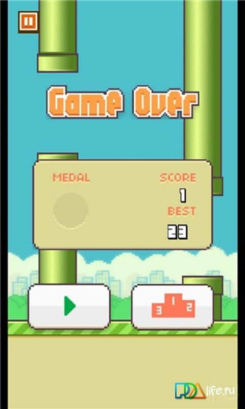 Flappy Bird es un juego de arcade en píxeles para Windows Phone sobre las aventuras de un pequeño pájaro en un mundo de tubos. Jugabilidad fácil: un simple toque controla al pájaro, levantándola y dejándola caer en el camino. ¡Supera todos los tubos, deslizándote por pasajes estrechos y sin chocar con ellos! Dinámico y enfocado, ¡intenta ganar las 4 medallas posibles!