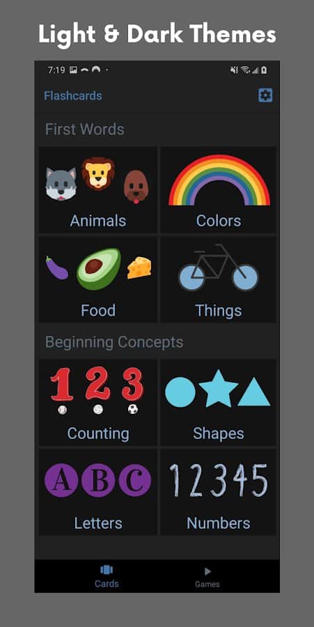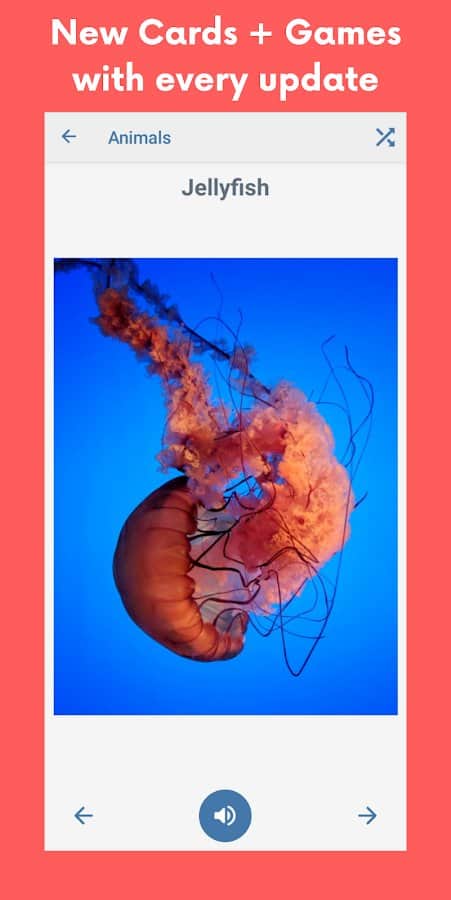 Para que el niño conozca el mundo, se familiarice con los nombres de diferentes objetos y fenómenos, pídale que juegue en un juego divertido y educativo con las cartas Flashcard Baby, que no solo ampliará sus horizontes, sino que también ayudará a desarrollar la memoria, la atención, la lógica y el razonamiento. Elija cartas de cientos de imágenes temáticas que despierten un interés más profundo y consoliden el conocimiento, pruebe el cuestionario y complete tareas interactivas. La aplicación no tiene publicidad y no tiene que preocuparse por que el niño presione accidentalmente botones innecesarios. El diseño se ha desarrollado teniendo en cuenta la edad y es simple, pero al mismo tiempo aumenta el interés.