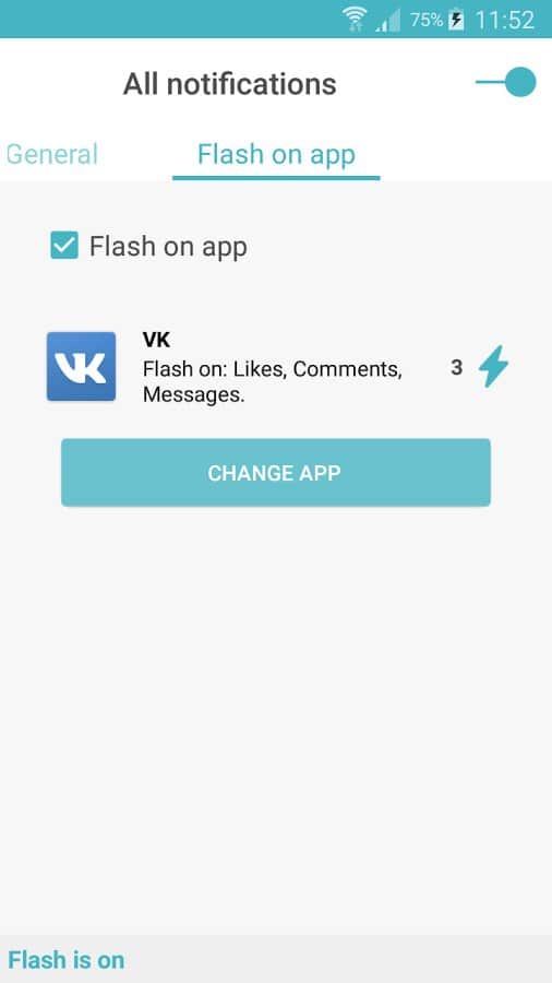 FlashOnCall - una aplicación para personas con problemas auditivos, o simplemente para aquellos que quieren añadir variedad a las llamadas entrantes. Esta aplicación utiliza la linterna, por lo que su presencia es necesaria, parpadeará en el momento en que recibas una llamada entrante.
