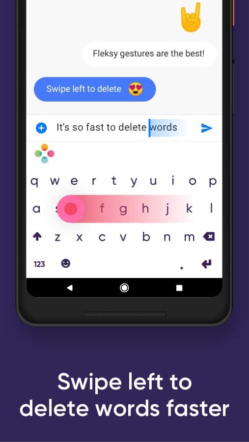 Teclado Fleksy - Escritura Feliz – excelente teclado moderno para Android con gran soporte de idiomas. Si falta el idioma necesario en la aplicación, puedes votar por su presencia, llevando así su inclusión en la versión actualizada del programa. Agradable.