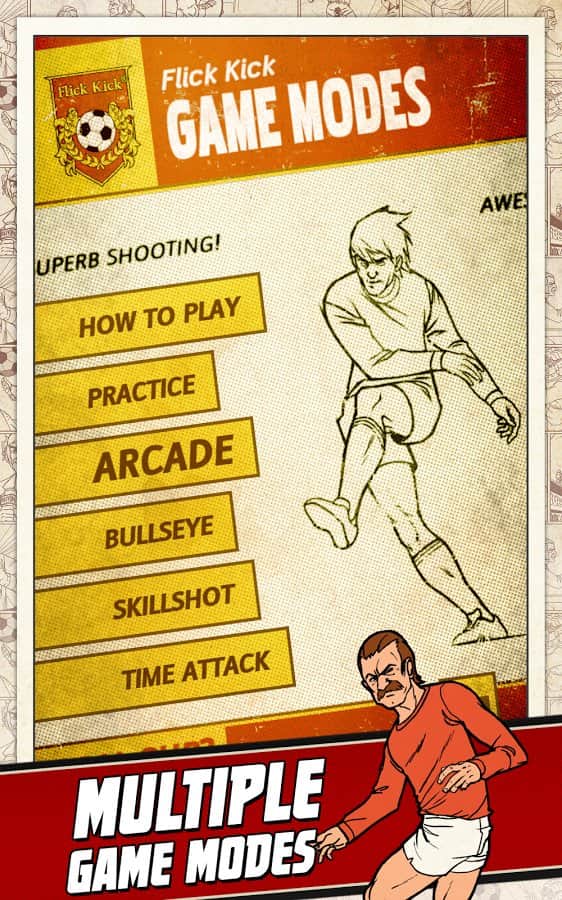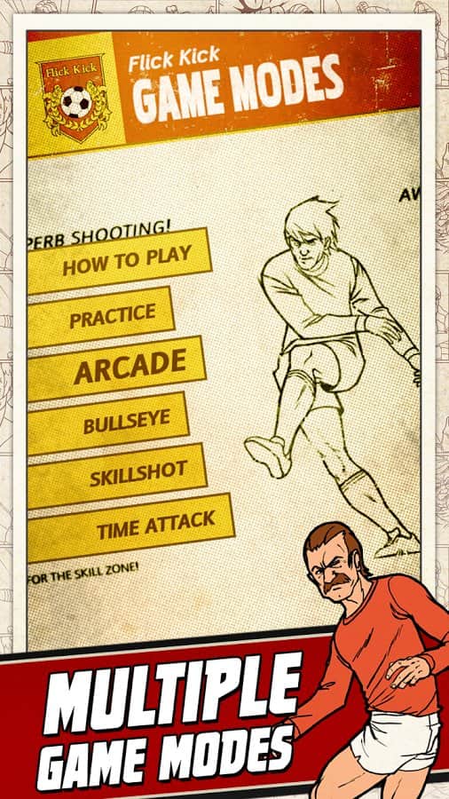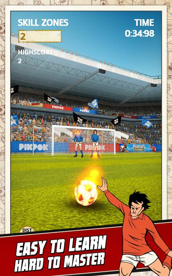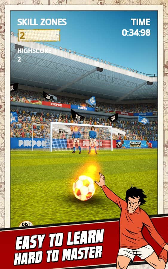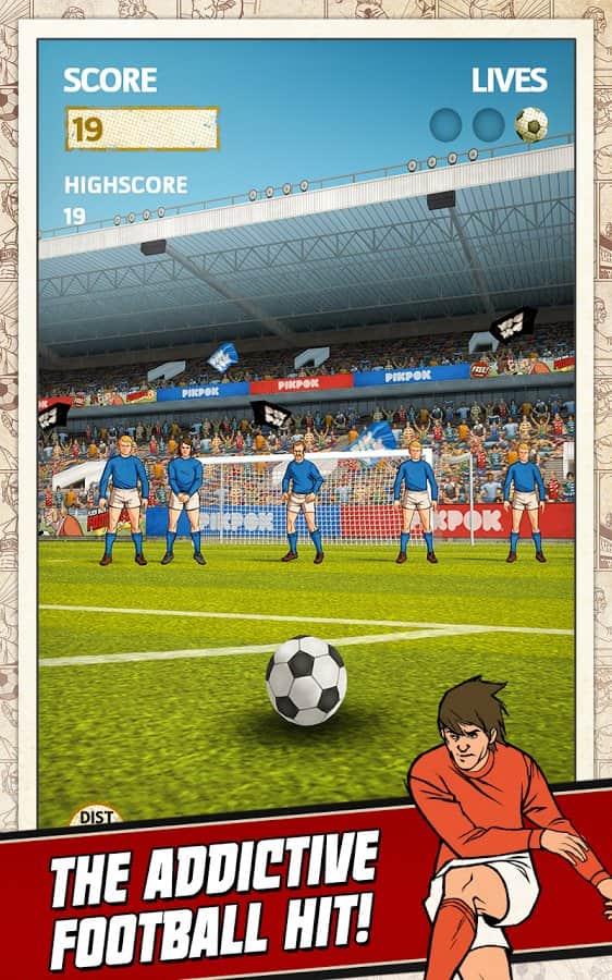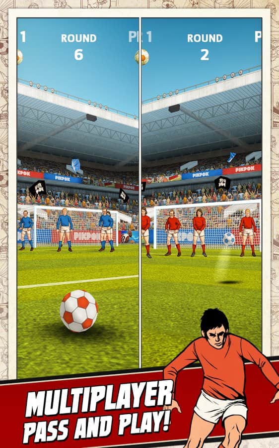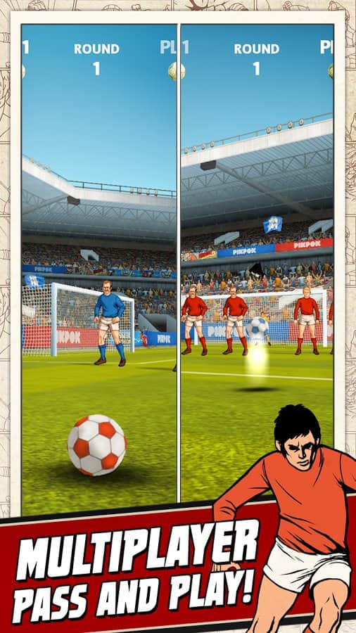 Flick Kick Football Kickoff – juega al fútbol en tu dispositivo Android. Tu objetivo, por supuesto, es marcar tantos goles como sea posible en la red del oponente, superando a todos los defensores y engañando al portero. No es una tarea fácil. Flick Kick Football Kickoff contiene varios modos de juego y multijugador, lo que te da la oportunidad de competir con amigos.