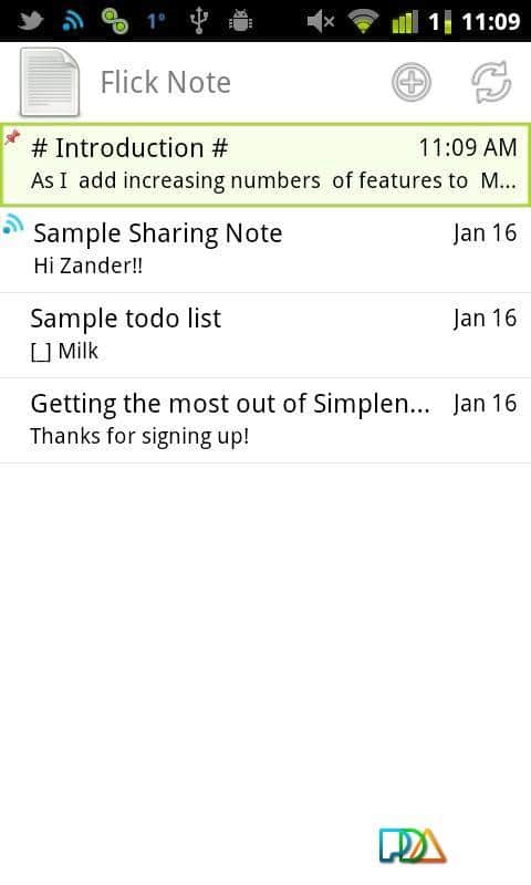 Comentarios a Flick Note en Android