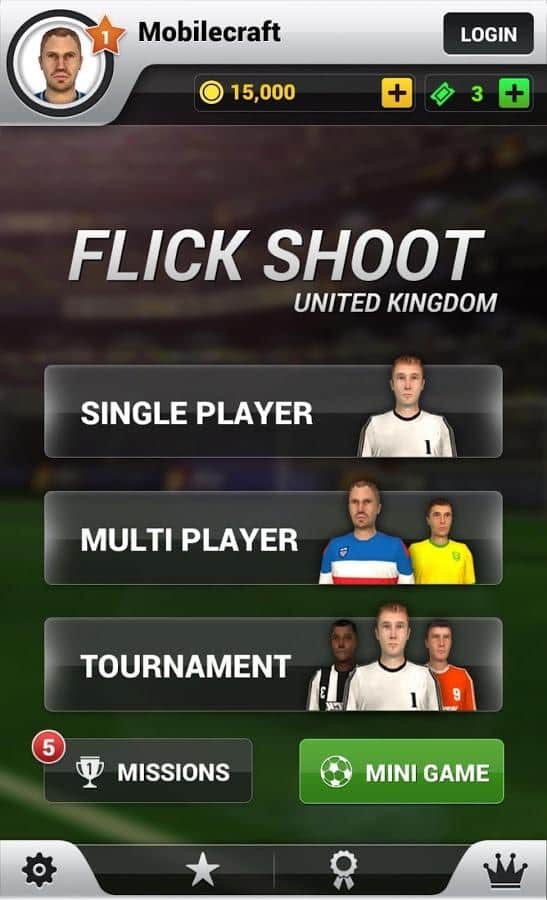 Flick Shoot UK – un juego de deportes en Android donde jugarás al fútbol. En este juego marcarás tiros libres en la portería del oponente y realizarás varias misiones del juego. Descubre modos de un solo jugador completamente nuevos, misiones infinitas y mini-juegos gratificantes por los que ganarás comisiones. Además, el juego tiene un modo multijugador, donde podrás unirte al torneo y competir con jugadores reales de todo el mundo. Obtén el máximo placer de la forma única de ejecutar tiros libres, física y animaciones realistas.