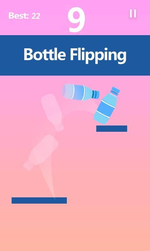 Flip Water Bottle – un juego simple pero adictivo, donde lanzas la botella hacia arriba para que aterrice en la estantería. La tarea en este juego es clara para ti, así que usando el deslizamiento lanza una botella de agua para que suba a la siguiente estantería y así sucesivamente hasta el infinito. Lanza la botella y a medida que avanza el juego, recoge cubitos de hielo, que sirven como la moneda en este juego y te ayudarán a abrir una nueva botella. Si tu botella se resbala de la estantería y cae o fallas, entonces tendrás que empezar el juego de nuevo. Establece tu récord en este juego y compite con tus amigos por los mejores resultados.