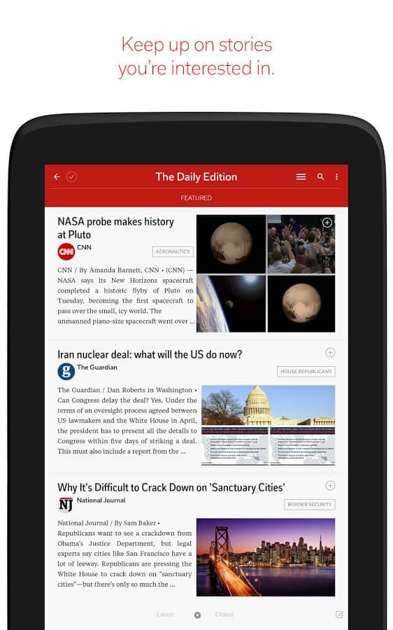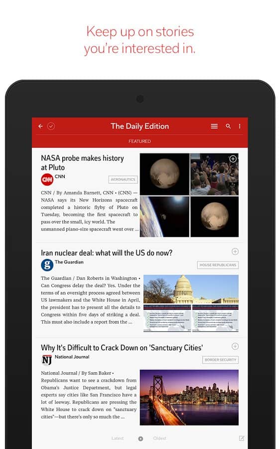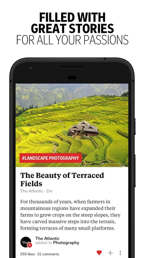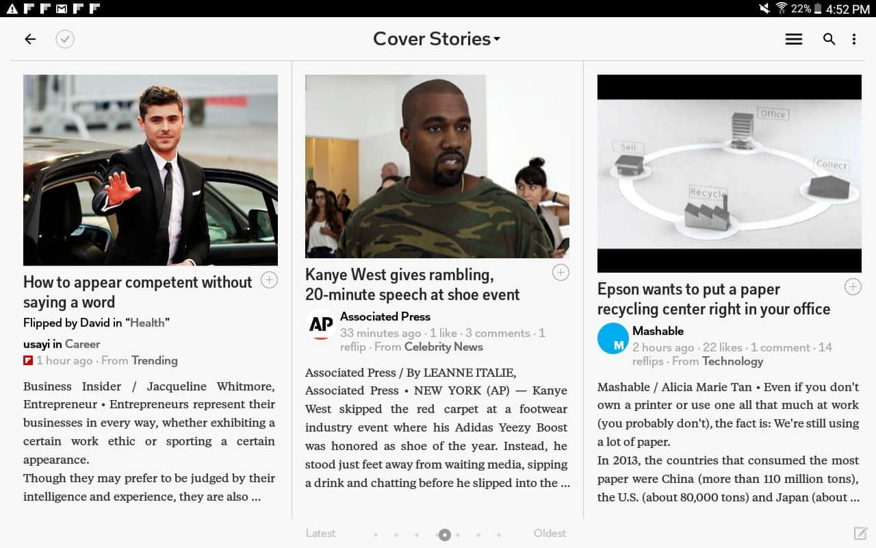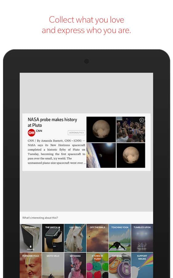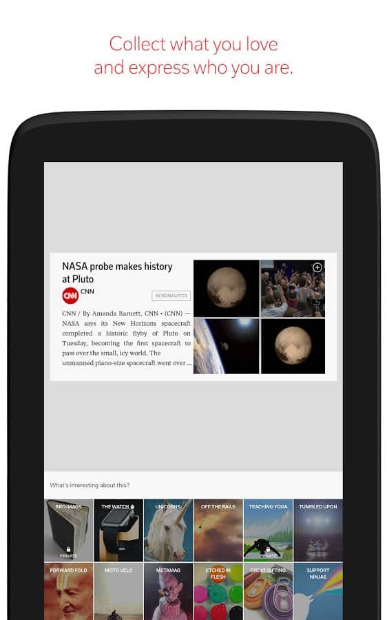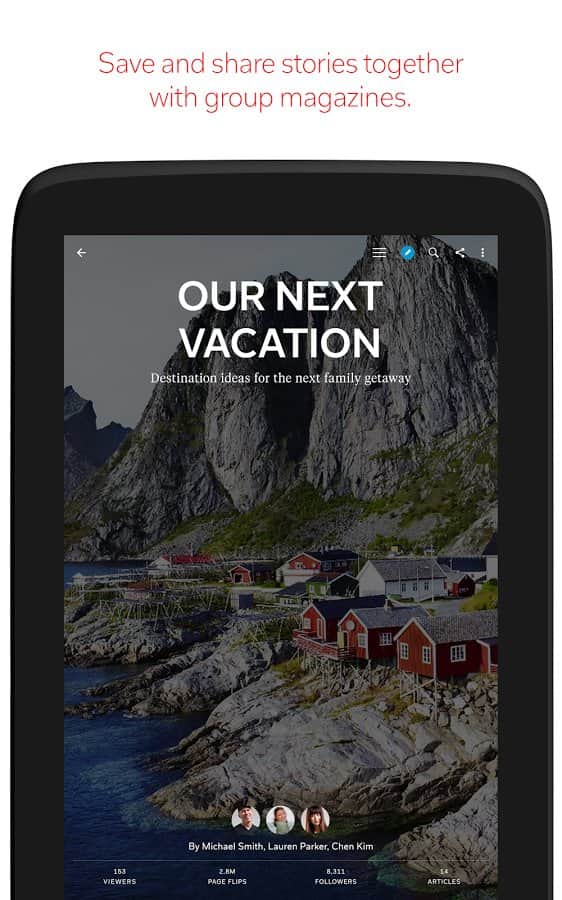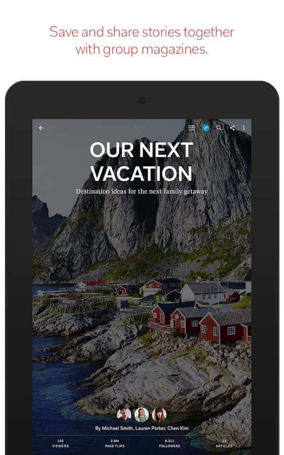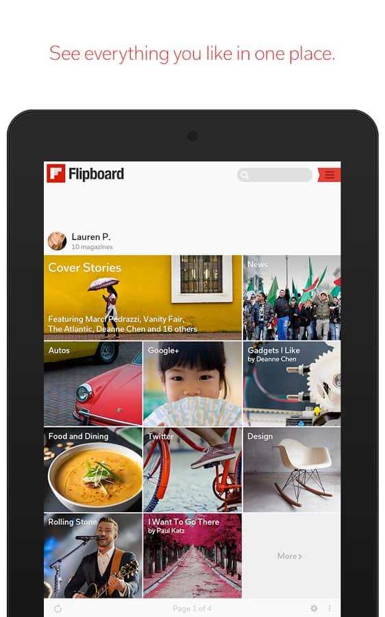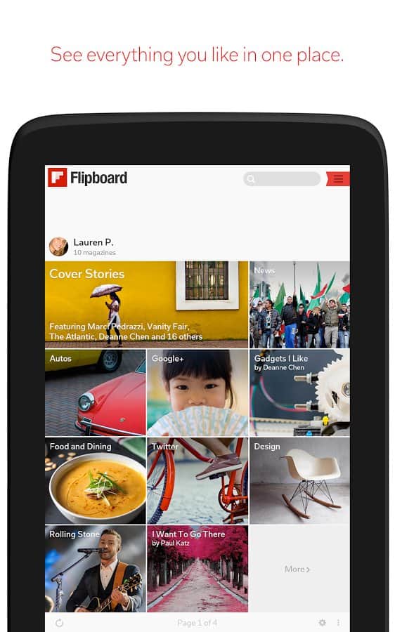 Flipboard es una aplicación conveniente para tu dispositivo Android. Flipboard crea una revista personalizada a partir de todo lo compartido contigo en varias redes sociales, reflejando el contenido de Facebook o Twitter, fotos de amigos en Instagram y mucho, mucho más. También te permite navegar por los feeds de noticias de Google Reader, LinkedIn, Tumblr, Flickr, 500px, Sina Weibo y Renren en Flipboard. Puedes usar Instapaper o Read It Later para guardar los materiales para una lectura posterior. Descarga gratis y disfruta. ¡Cómodo, genial y fácil!