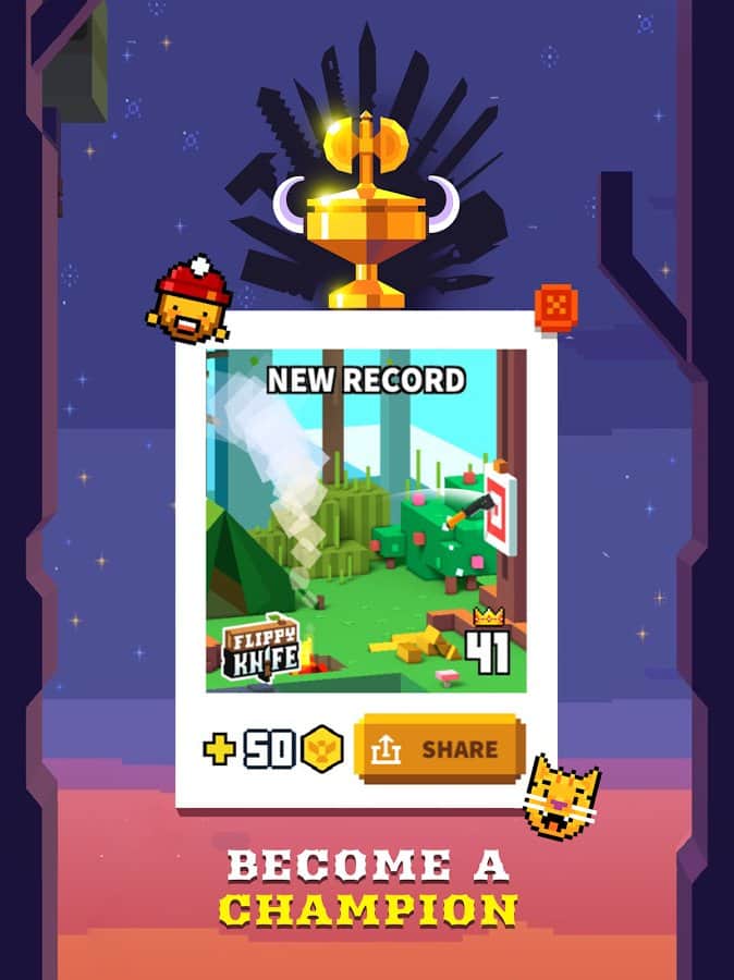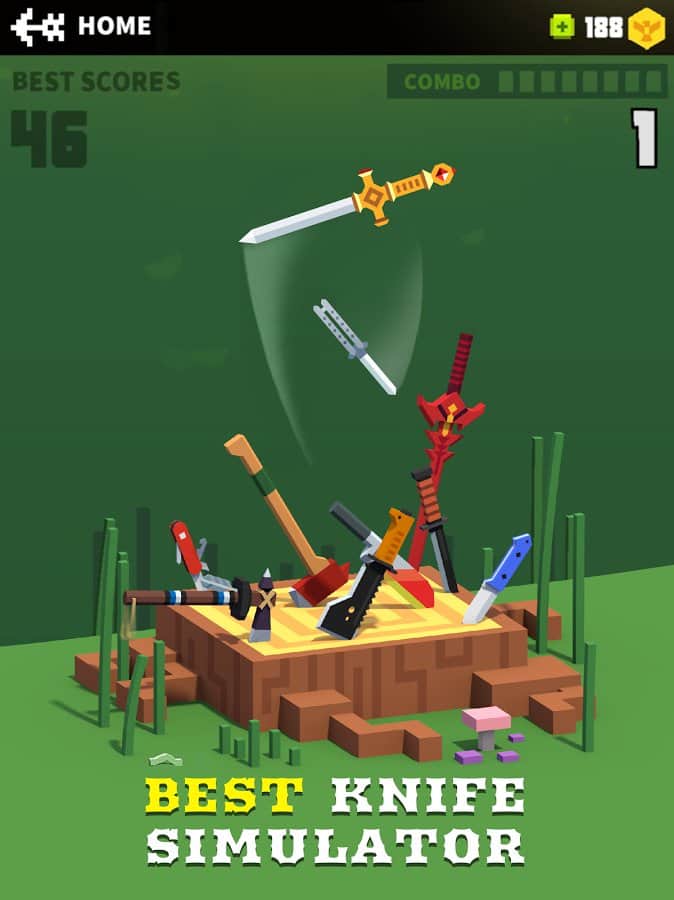 Flippy Knife – un juego en Android donde lanzarás una variedad de cuchillos al objetivo. En este juego aprenderás a usar armas cuerpo a cuerpo, incluyendo cuchillos, hachas y espadas. Tu tarea principal en este juego es lanzar cuchillos a tablas, troncos y otros varios objetivos. Sigue todas las misiones asignadas y realiza disparos con precisión. Un toque de dedo realiza un lanzamiento, considerando con precisión la trayectoria de vuelo. Colecciona la colección única de armas blancas y establece tu récord en este juego. Obtén recompensas y desbloquea nuevas ubicaciones que te deleitarán con hermosos gráficos.