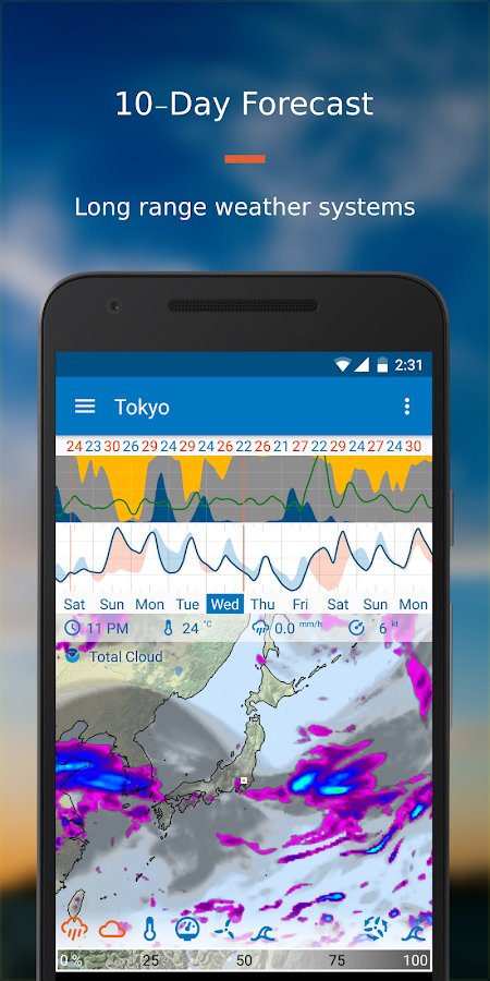Flowx - una aplicación muy única para mostrar el pronóstico del tiempo. Con esta aplicación siempre estarás al tanto de cuándo y dónde lloverá o nevará, y cuándo hará calor. Su característica principal es el mapa meteorológico que muestra un montón de diferentes indicadores. Usando color, verás cómo se mueve el ciclón en qué dirección, todo en tiempo real, porque la información se actualiza muy a menudo.