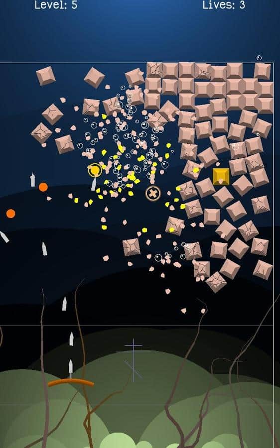 Fluid Arkanoid / Arkanoid Líquido - juego en Android en el que necesitas hacer que una bola entre en varios bloques. Pero hacerlo a veces no es tan fácil, ya que todo se mueve aleatoriamente, y a veces incluso tienes que participar en una carrera para llegar a los cubos. En algunos casos, puedes encontrar peces, pero a veces pueden interferir.