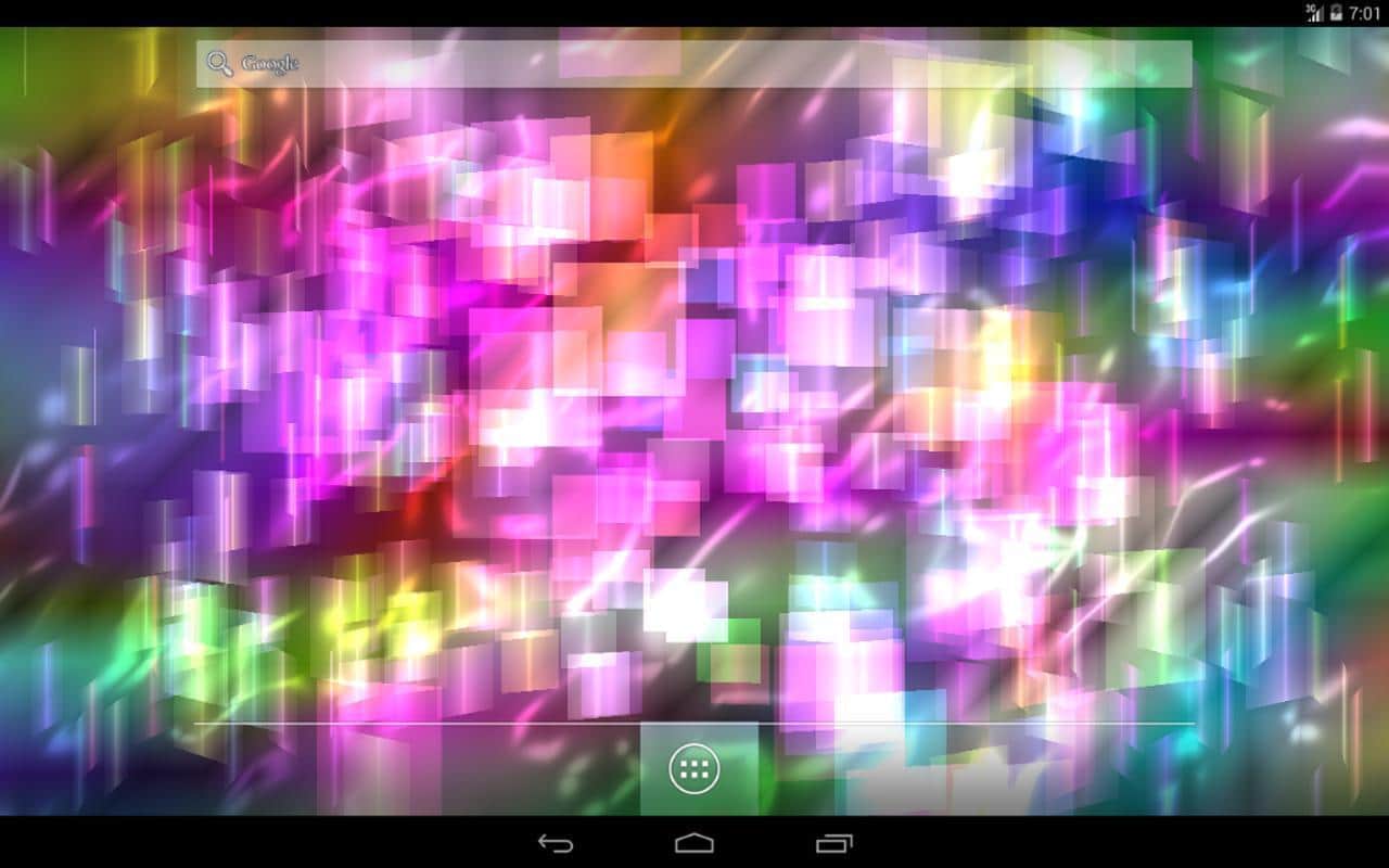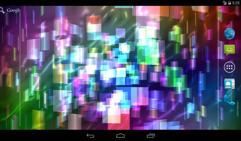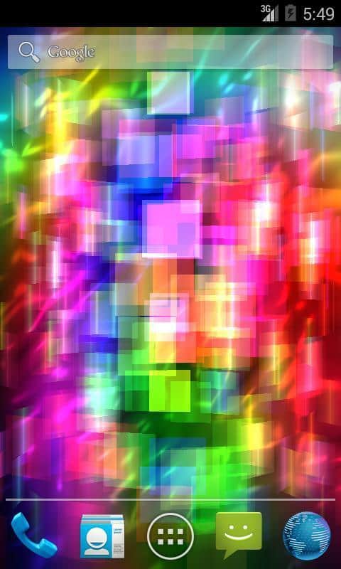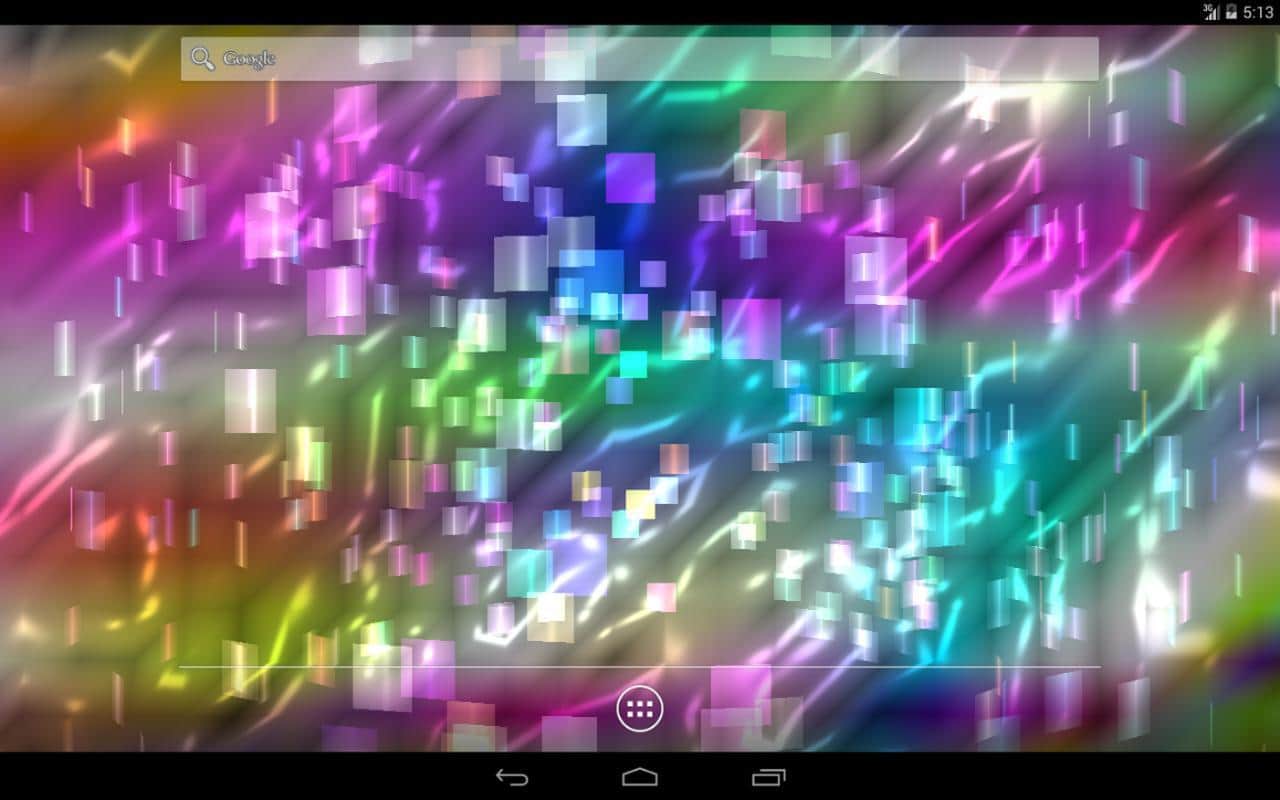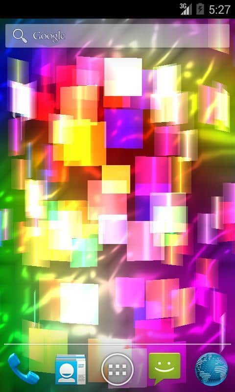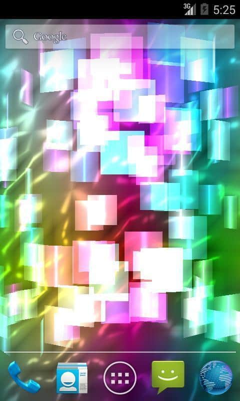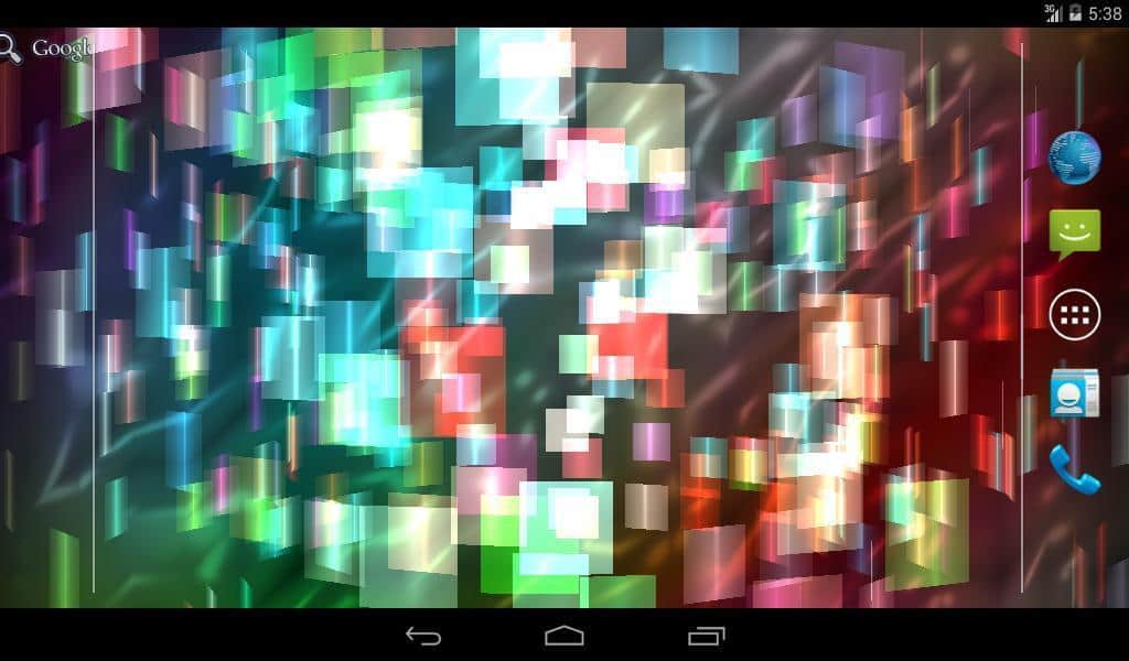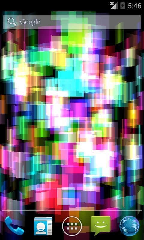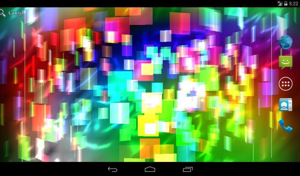 Fly Color Pro Live Wallpaper - fondos de pantalla en vivo abstractos que representan una especie de mosaico tridimensional, compuesto por objetos de colores brillantes y centelleantes. Todos los elementos del fondo de pantalla cambian en la gama de colores y giran en diferentes planos, creando así un mosaico tridimensional que gira y cambia. Al tocar la pantalla, la imagen reacciona y comienza a jugar con los colores de manera más intensa y a girar.