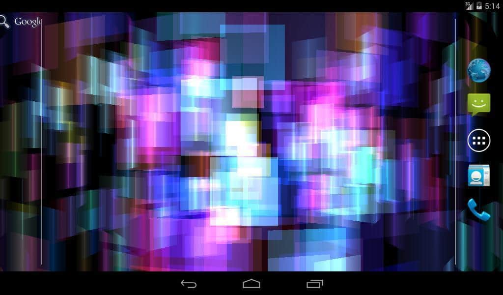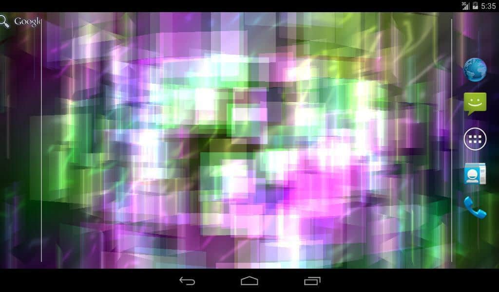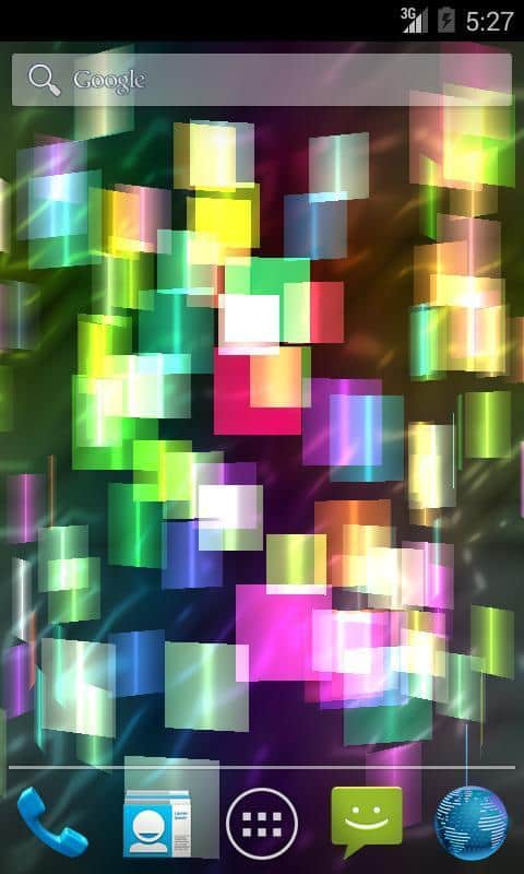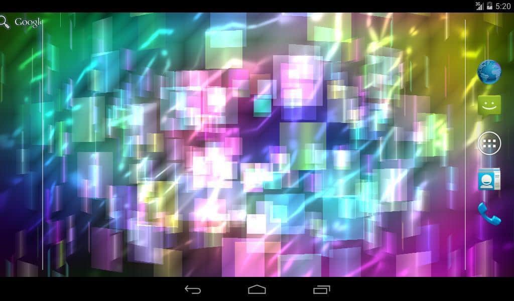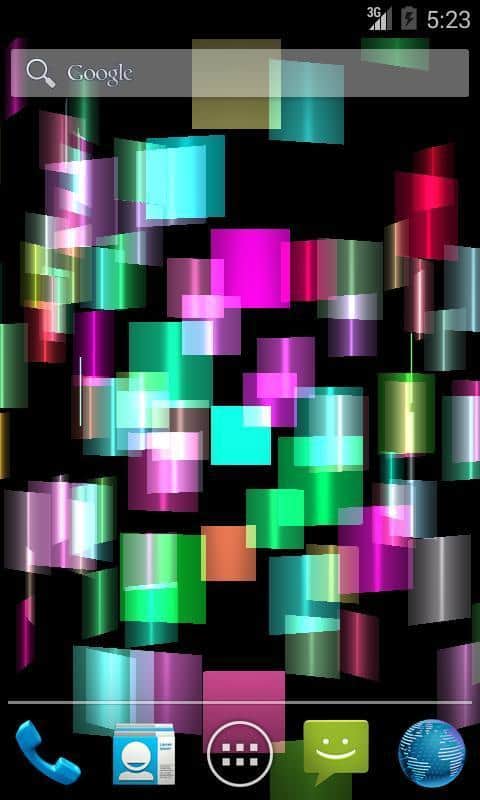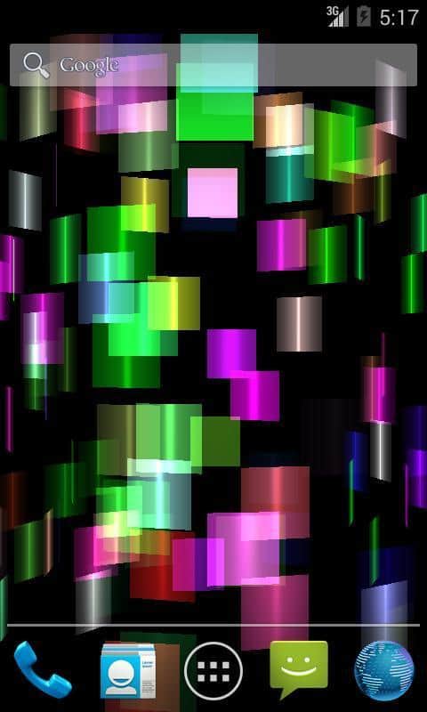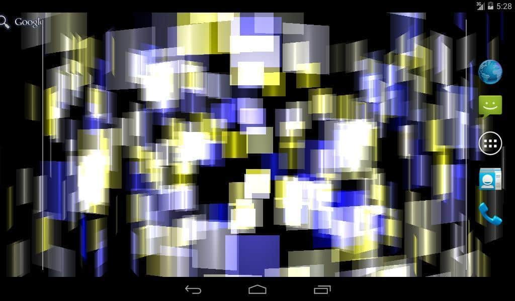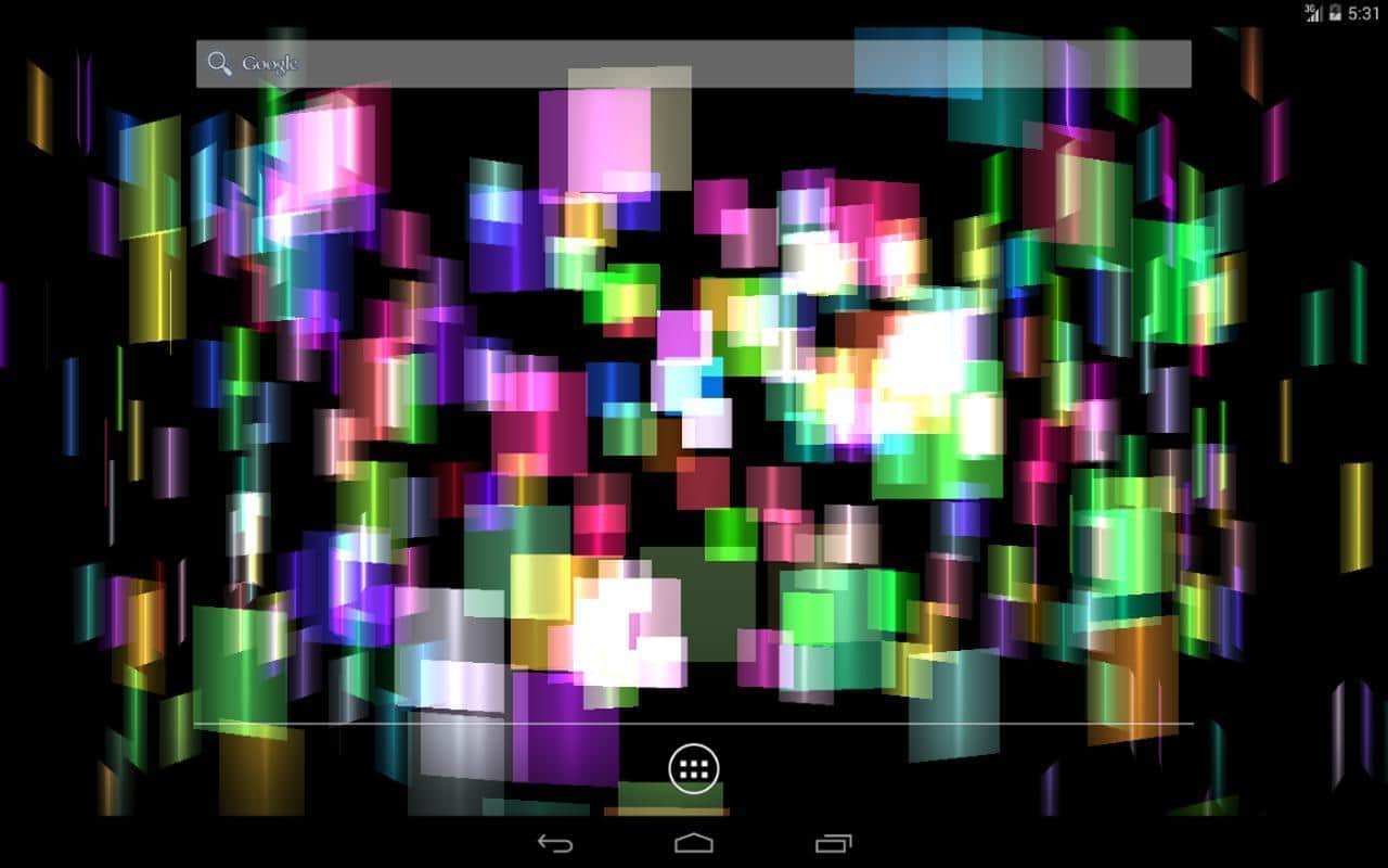 Fly Color Pro Live Wallpaper - fondos de pantalla en vivo abstractos que representan una especie de mosaico tridimensional, compuesto por objetos de colores brillantes y centelleantes. Todos los elementos del fondo de pantalla cambian en la gama de colores y giran en diferentes planos, creando así un mosaico tridimensional que gira y cambia. Al tocar la pantalla, la imagen reacciona y comienza a jugar con los colores de manera más intensa y a girar.