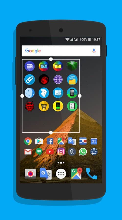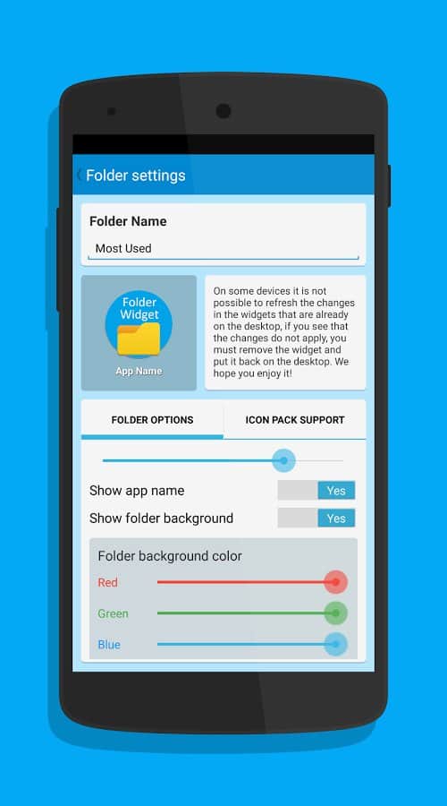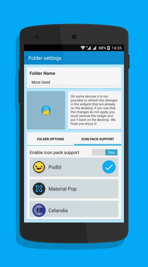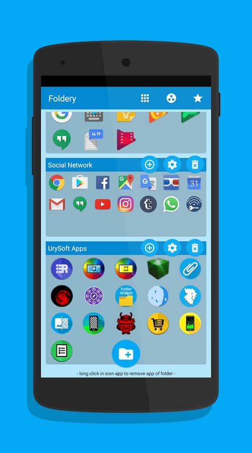 Foldery Multicon Widget Folder para buscar los widgets deseados ya es un tema anticuado, ahora puedes crearlos tú mismo, editarlos como necesites e incluso agregar algunos elementos visuales. Esta aplicación es ideal para aquellos a quienes les gusta llenar su trabajo hasta el borde. Crear los widgets es muy simple, solo necesitas elegir su forma inicial, y luego puedes cambiarla simplemente estirándola o encogiéndola. También hay una variedad de configuraciones avanzadas, con las que puedes crear un widget realmente único.