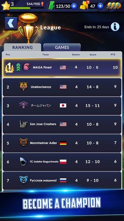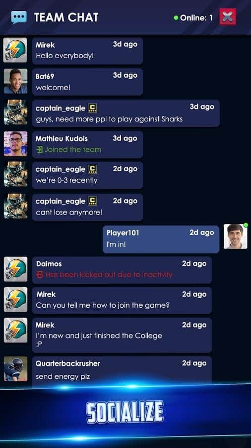 & lt;p & gt;Fútbol Élite: Juegos Sociales de Fútbol Americano - ¡Lanza el balón y gana los campeonatos de fútbol americano! Conviértete en una verdadera estrella profesional para unirte a cualquier equipo y ser el jugador más solicitado. Entrena constantemente, aprende nuevos trucos, gana la confianza de los aficionados, comunícate con otros jugadores, lucha con ellos y siempre gana. ¿Podrás unirte a la Academia Élite de Fútbol Americano y ser aún más genial? Desarrolla estrategias perfectas para los partidos, realiza ataques increíbles y defiéndete hábilmente.