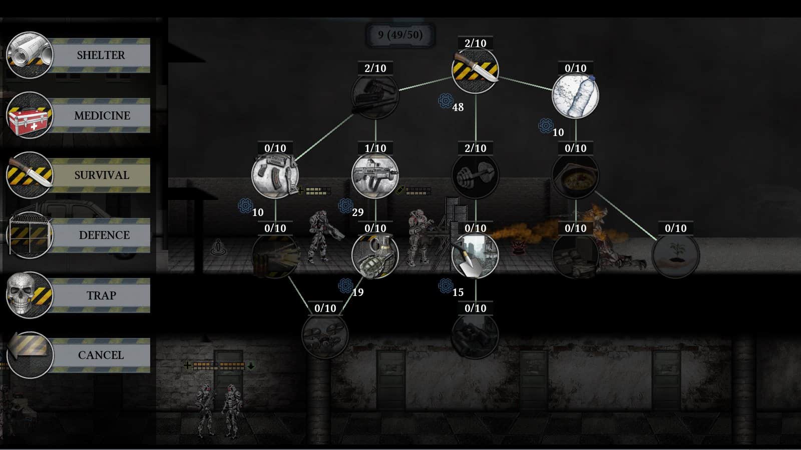 Gestiona recursos: ten en cuenta el hambre, la sed, las enfermedades, el sangrado y la radiación.