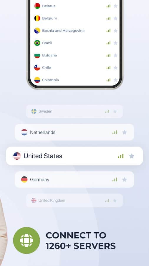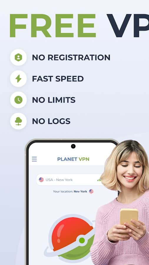 VPN gratuito de Planet VPN - Mantén una seguridad y anonimato completos en Internet, mientras desbloqueas todas las redes sociales, aplicaciones o páginas web prohibidas. Conéctate a cualquier ubicación disponible desde puntos de todo el mundo, entre ellas en la lista: EE. UU., Alemania, Francia, Japón, Reino Unido, Canadá, Brasil, Rusia, Argentina, Italia, etc. Entre toda la lista, algunos servidores son gratuitos y están disponibles para todos, pero entre ellos hay algunos premium, a los que el acceso es más limitado, por lo que pueden funcionar incluso mejor que los públicos.