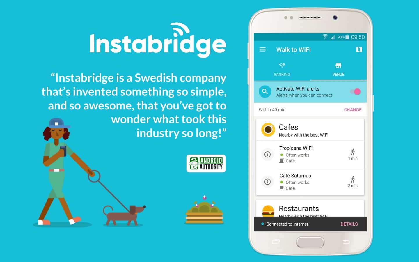 Wifi gratuito de Instabridge – un programa interesante creado por el desarrollador Instabridge AB, que tiene como objetivo proporcionarte acceso a miles de puntos de acceso WiFi con acceso a Internet gratuito en todo el mundo. Comparte todos los puntos encontrados con tus amigos, ya que Instabridge te permite almacenar todas las contraseñas de redes WiFi públicas en línea.