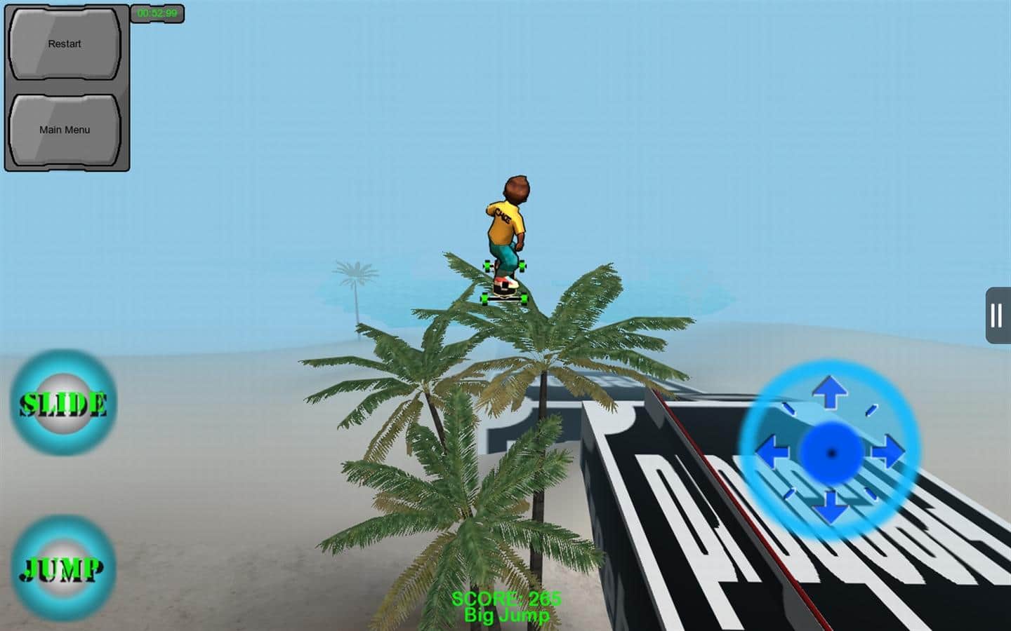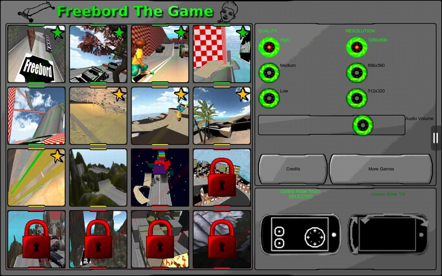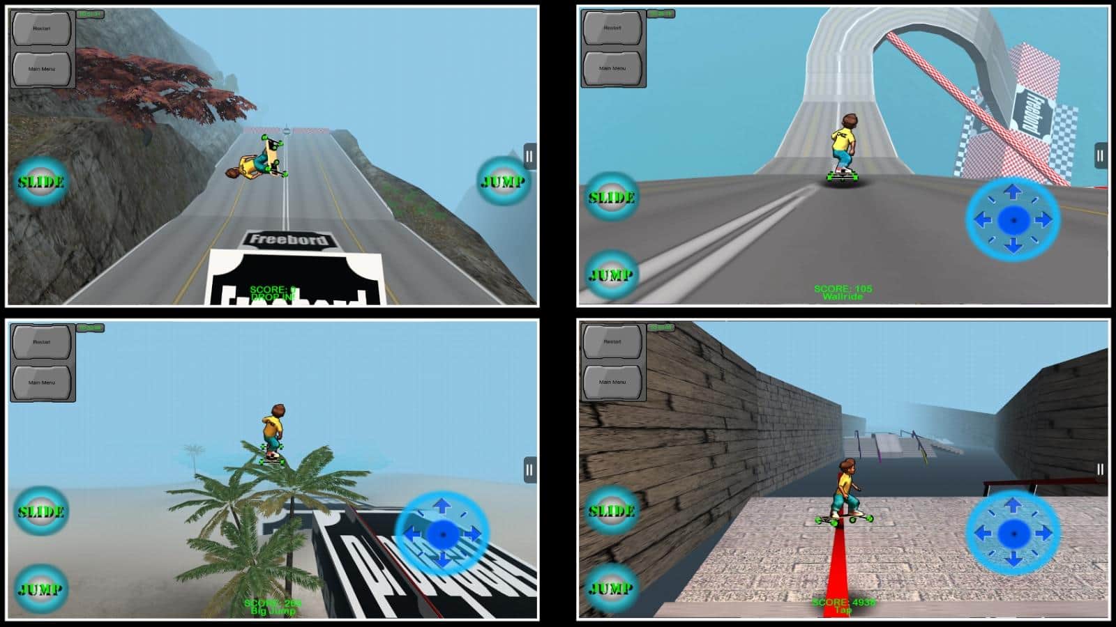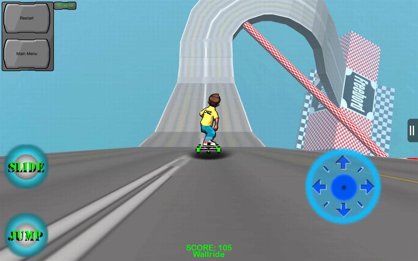 Freebord The Game es un emocionante juego que presenta el nuevo deporte Freebording. Este deporte es una pendiente peligrosa en un monopatín de seis ruedas. Conduce a través de diferentes pistas, recoge bonificaciones y monedas y desbloquea nuevas pistas que no se duplican. Encontrarás todo tipo de obstáculos y dificultades que te impedirán avanzar.