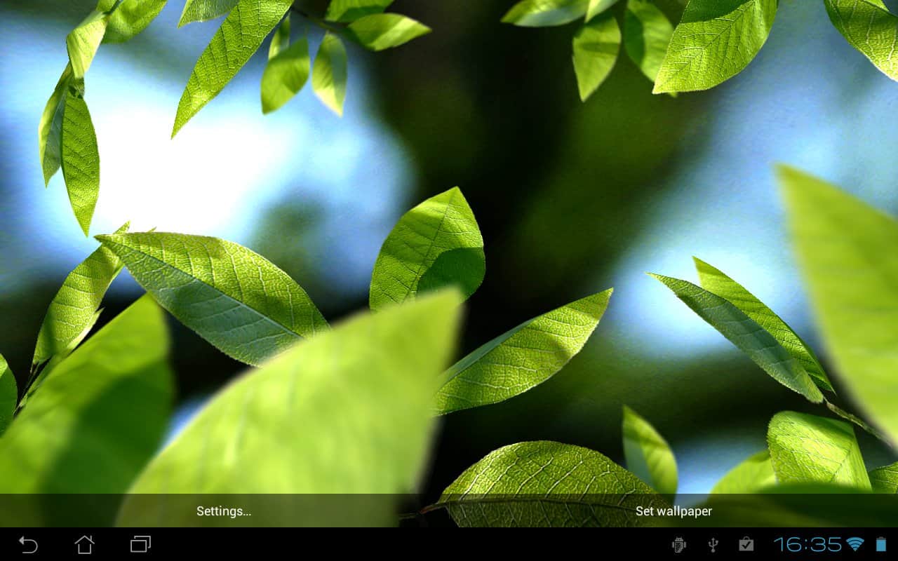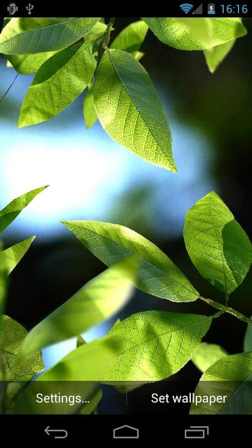 Hojas Frescas - Fondos de pantalla hermosos y fascinantes, para ti. ¿El clima se ha enfriado y ha llegado el otoño? ¡No hay problema! Con estos fondos animados, ¡el verano siempre estará cerca! Estos fondos de pantalla siempre te alegrarán con sus brillantes colores verdes, pero eso no es todo. Puedes personalizar el clima a tu gusto, ya sea lluvia o nieve, así como elegir la estación del año, lo que cambiará las hojas. Además, puedes configurarlos a tu manera, agregar sonidos y disfrutar de la naturaleza. Cambia todo, basándote en tu estado de ánimo. También, estos fondos de pantalla tienen una imagen de muy buena calidad, lo que solo añade realismo. Descárgalo y sumérgete de nuevo en el verano, ¡es tan fácil!
