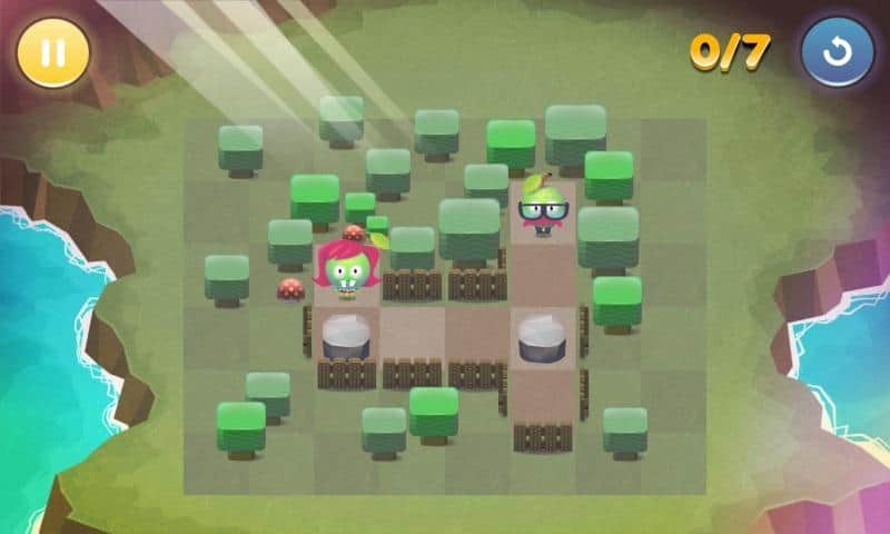 Citas de Frutas - un juego en Android en el que tienes que encontrar una pareja de frutas del mismo color para una cita. Con un dedo, mueve la fruta por el tablero, pero ten cuidado con los obstáculos, como piedras, coches o frutas de otro color, que siempre estarán en tu camino. Y no caigas en los animales, que se esfuerzan por probar la jugosa fruta.