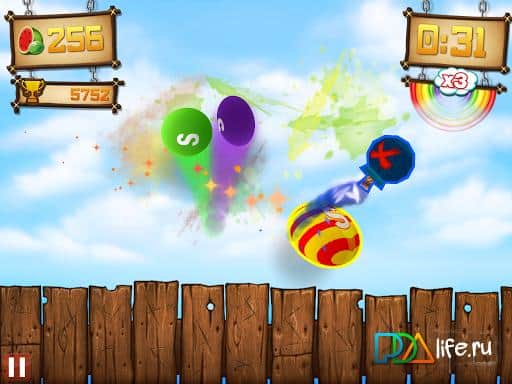 Fruit Ninja vs Skittles - ¡Los mundos de los caramelos y Fruit Ninja chocaron en el hermoso juego en android! Ahora en este juego no solo hay fruta, ¡sino también caramelos! Gracias a los caramelos Skittles, el juego se ha vuelto más colorido y brillante. Como antes, necesitas cortar fruta y caramelos voladores, pero en el juego también se añadió un colorido arco iris. Como antes, el juego tiene bombas. Con la adición de caramelos, el juego se volvió más divertido y mucho más emocionante.