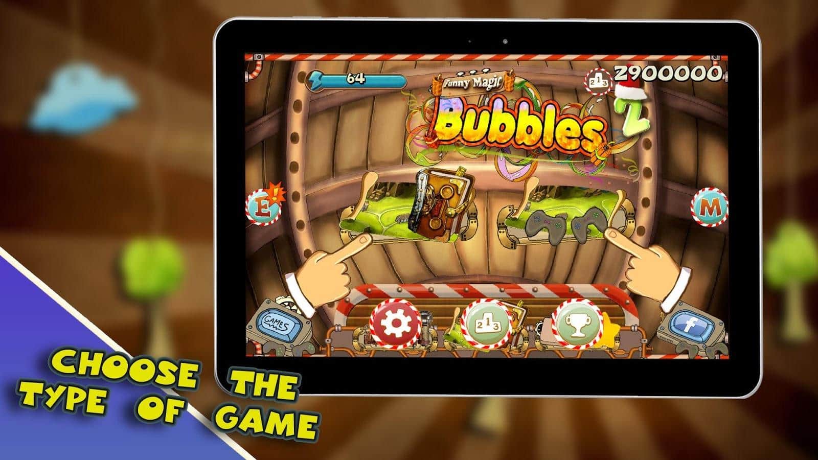Burbujas Mágicas Divertidas 2 – un juego adictivo para Android donde estallarás burbujas. En este juego volarás en un globo aerostático en el cielo y estallarás burbujas de jabón, de esta manera salvando al mundo del hechizo de un malvado mago. Comienza tu aventura ahora mismo, revienta burbujas y así recoge puntos y bonificaciones. Reventar burbujas se ha vuelto aún más emocionante e interesante, pero intenta evitar las burbujas que contienen bombas en su interior, te quitarán puntos y tiempo. Desafía tu reacción y trata de destruir todas las burbujas que caen de arriba hacia abajo. El juego cuenta con dos modos de juego: modo tiempo y modo burbujas de colores.