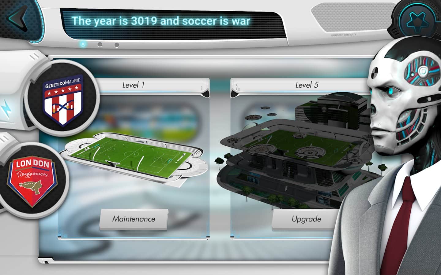 Futuball, un juego de deportes de fútbol futurista para Android donde jugarás al fútbol del futuro. En este juego, te transportas al lejano futuro en el año 3020, donde el fútbol es jugado por robots y se ha convertido en una verdadera guerra. Los clubes de fútbol obtuvieron legiones de fútbol de ADN del viejo mundo y ahora son capaces de crear un equipo invencible. Crea un equipo de once de los robots más productivos y experimentados. Juega el papel de administrador de fútbol de un equipo de robots y guíalo a la victoria. Desafía a jugadores de todo el mundo y participa en batallas multijugador PvP contra amigos y otros administradores. Juega el juego y disfruta de excelentes gráficos en 3D, mini-juegos y emocionantes partidos.