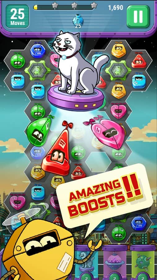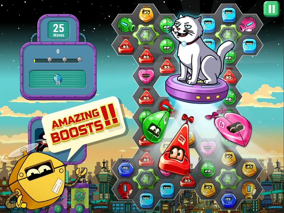 Futurama: Juego de Drones – El profesor Farnsworth envía a su valiente equipo a un viaje mortal. En este juego tienes que ayudar a los héroes principales a controlar el dron con un aparato láser, lo que requerirá tu plena concentración y atención especial. Para esto, necesitas recoger cuatro o más personajes idénticos en una fila y acumular suficientes puntos para atacar. Realiza la misión asignada lo más rápido posible, utilizando las habilidades únicas de cada personaje y grandes bonificaciones. Con cada nuevo nivel, la complejidad del juego aumentará y te resultará cada vez más difícil reunir un número suficiente de estrellas. Juega y disfruta de conocer a tus héroes favoritos de la serie animada homónima.