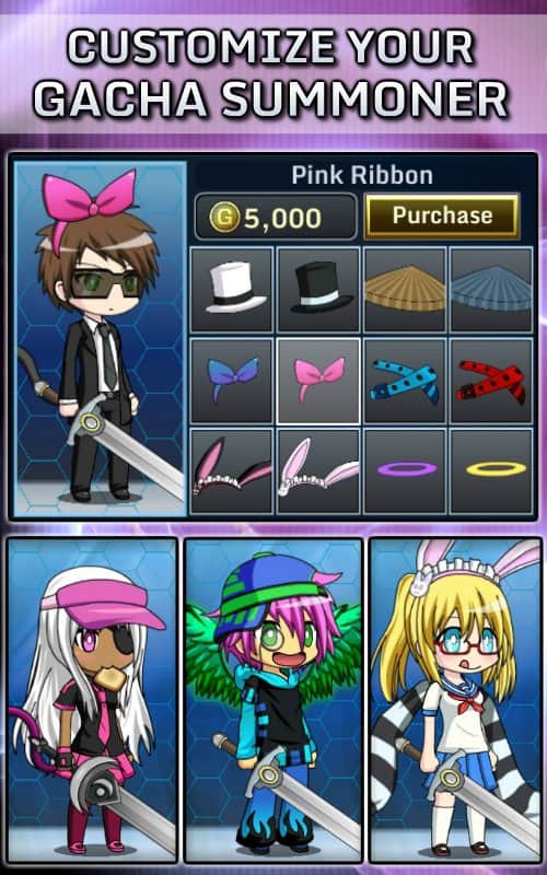 Gacha World RPG en Android, donde tienes que reunir un equipo de guerreros y proteger el planeta del mal. Reúne tu equipo invencible de héroes y haz todo lo posible para derrotar a los enemigos y jefes malvados. Crea sus héroes únicos, eligiendo para ellos un aspecto e imagen únicos. Cada personaje en el juego tiene habilidades y poderes únicos que puedes combinar y asestar un golpe fatal al enemigo. Por cada batalla superada con éxito, recibe recompensas valiosas y desbloquea nuevos héroes y personajes. Compra con el dinero nuevo equipo y armas para los soldados, así como vístelos con elegantes nuevos trajes.