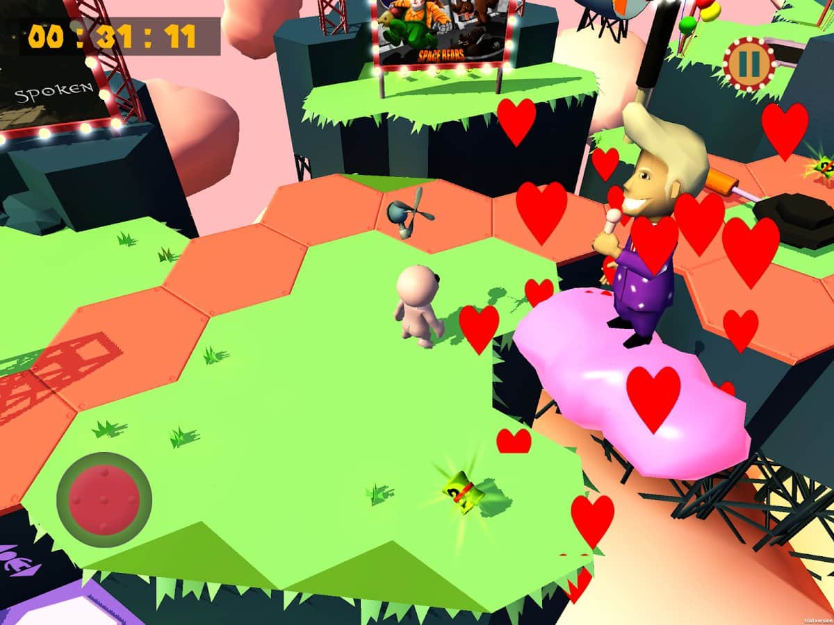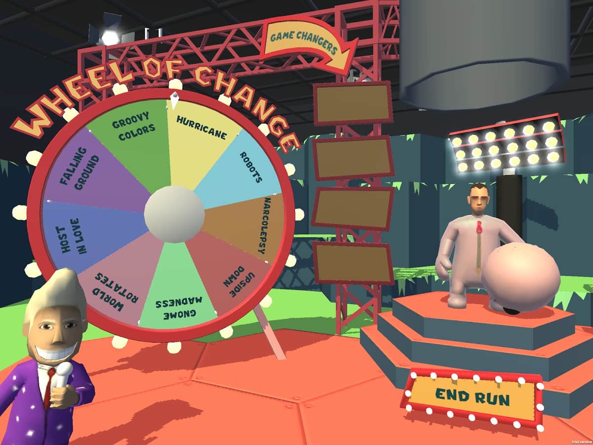 Game Changer – un juego en Android donde participas en un loco programa de televisión. Nuestro héroe, en un disfraz ridículo, participa en un programa de televisión, donde tendrá que superar un camino peligroso y no caer en la trampa, evitar todos los obstáculos y evitar encuentros con enemigos. El presentador del programa gira la rueda de la fortuna, que enumera varias trampas que se añaden al campo como obstáculos. Navega a través de niveles peligrosos en el menor tiempo posible y ayuda al personaje principal del juego a ganar esta carrera. Con cada nuevo nivel, el campo cambiará y se agregarán nuevas trampas. Este juego será apreciado por los jugadores por su fascinante jugabilidad, gráficos de alta calidad y numerosos obstáculos.