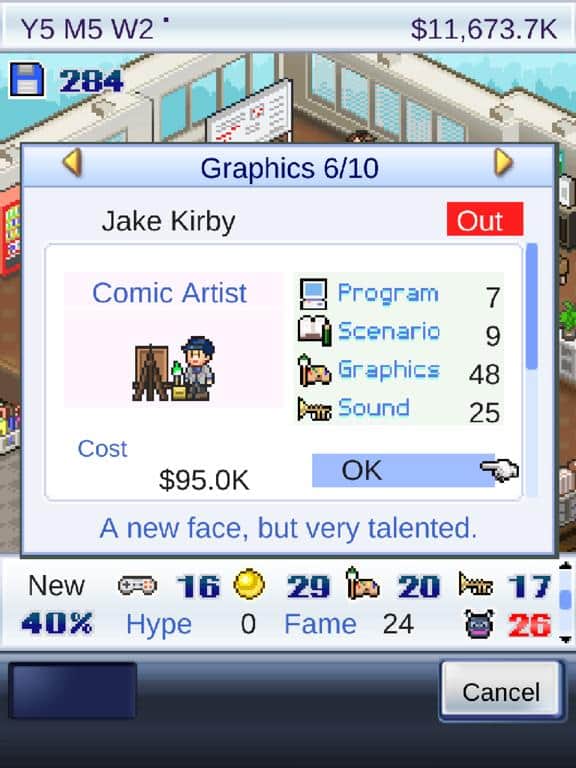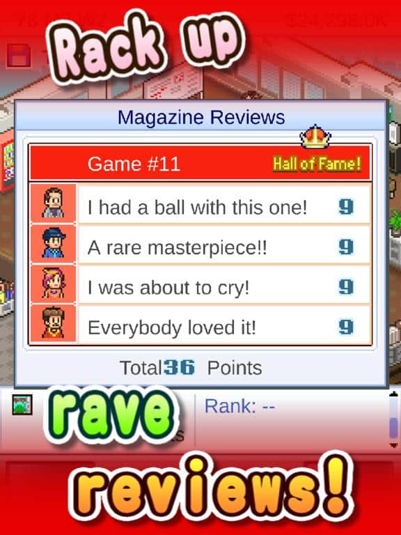 Game Dev Story+ - Mientras la competencia siga siendo muy pequeña, es hora de ponerse manos a la obra y comenzar a promocionar tu nuevo negocio: un estudio de videojuegos. Compra una habitación, decórala y coloca todas las cosas necesarias para comenzar, y luego contrata a programadores, ingenieros de sonido, animadores, ilustradores, diseñadores, especialistas en marketing, targetólogos y otros especialistas trabajadores para crear los mejores juegos en el gran mercado. Revisa regularmente las reseñas en las revistas y analiza qué acciones aún deben realizarse para mejorar tu producto.