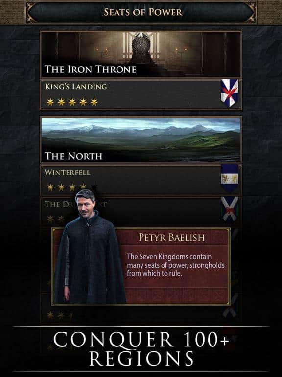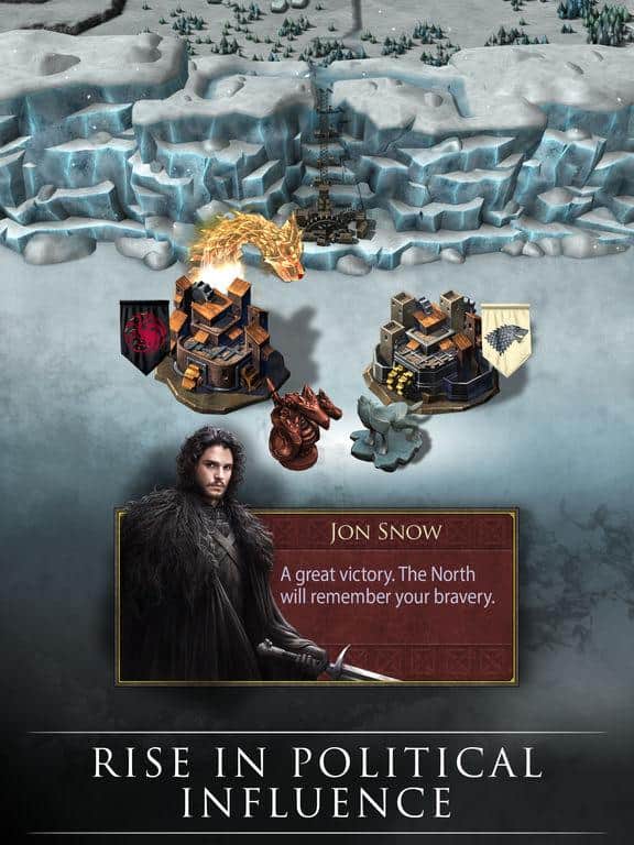 En este juego puedes convertirte en un verdadero Señor de Westeros y participar en las intensas batallas, que se extendieron desde el Muro, donde tienes que ayudar al joven lobo Jon Nieve en la batalla contra los Caminantes, hasta el Puerto Real, donde todos intentan apoderarse del Trono de Hierro. En el desarrollo del juego y la construcción del castillo te ayudará Tywin Lannister, quien sabe en la oficina, aunque tiene una mala reputación.