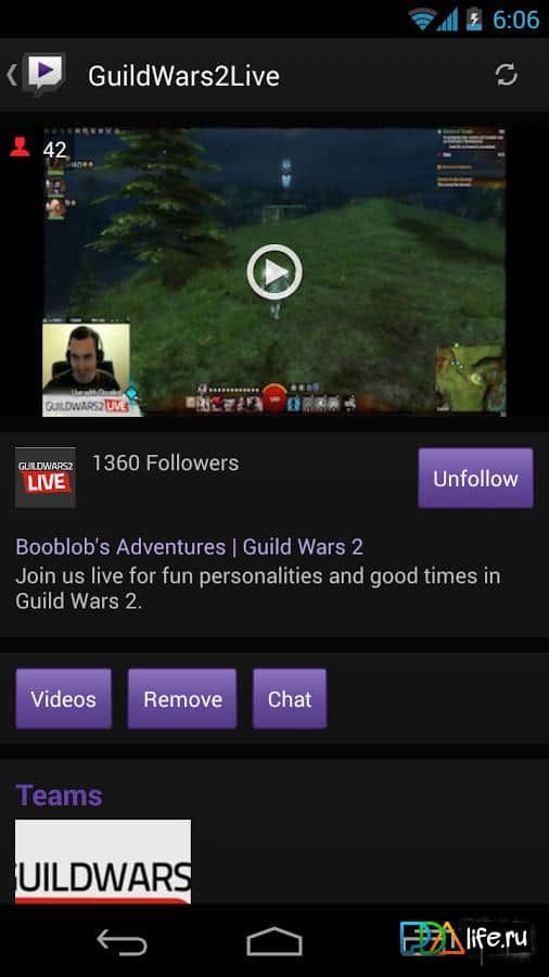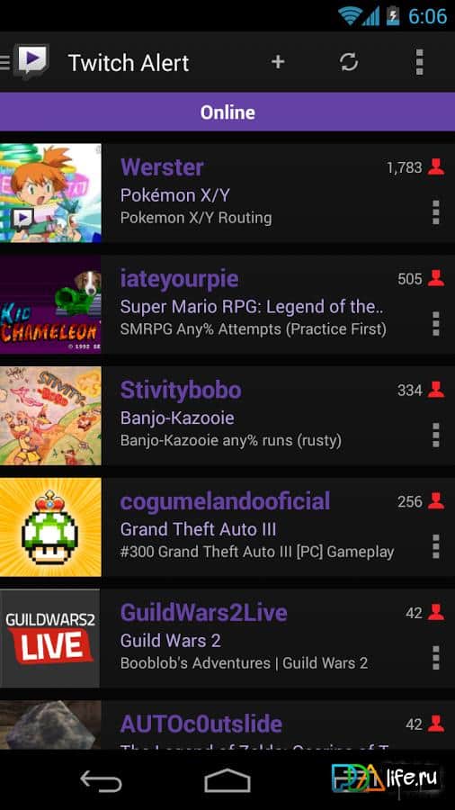 Aplicación Gameplay Alert para Android que te permite ver transmisiones de Twitch con la configuración para tu dispositivo. Es posible ver transmisiones en Alta, Media, Baja, Móvil; chatear con amigos en el chat, con acceso a todos los emoticonos y iconos; notificación del estado del usuario (en línea/fuera de línea), y mucho más.