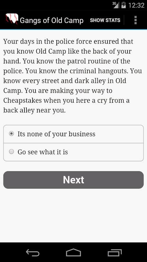 Pandillas de Old Camp – historias interactivas en Android donde estarás involucrado en emocionantes aventuras. En este juego, tu tarea principal será encontrar el amor, resolver numerosos acertijos, enfrentarte a los bandidos y descubrir el precio de la deuda y la traición. Responde a numerosas y variadas preguntas, que dependerán del destino de toda la historia y de giros inesperados. Resuelve problemas difíciles y desentraña los mitos que ayudarán a tu personaje a no morir y sobrevivir el mayor tiempo posible en el juego. En este juego no encontrarás una sola imagen, y toda la historia será apoyada por tu imaginación.