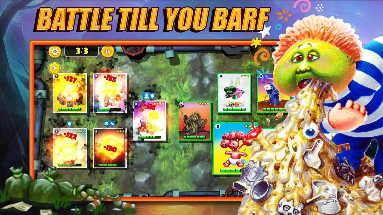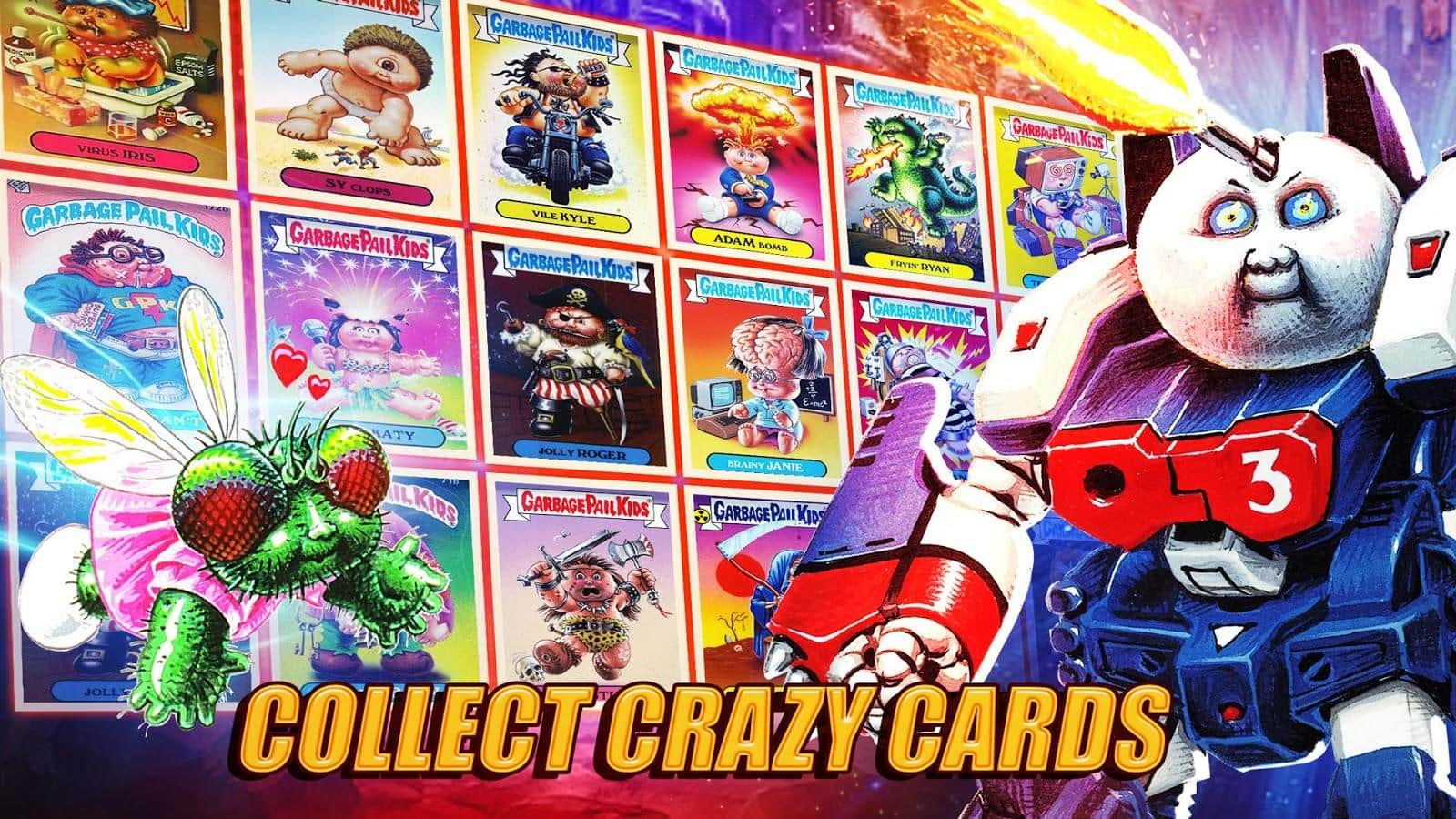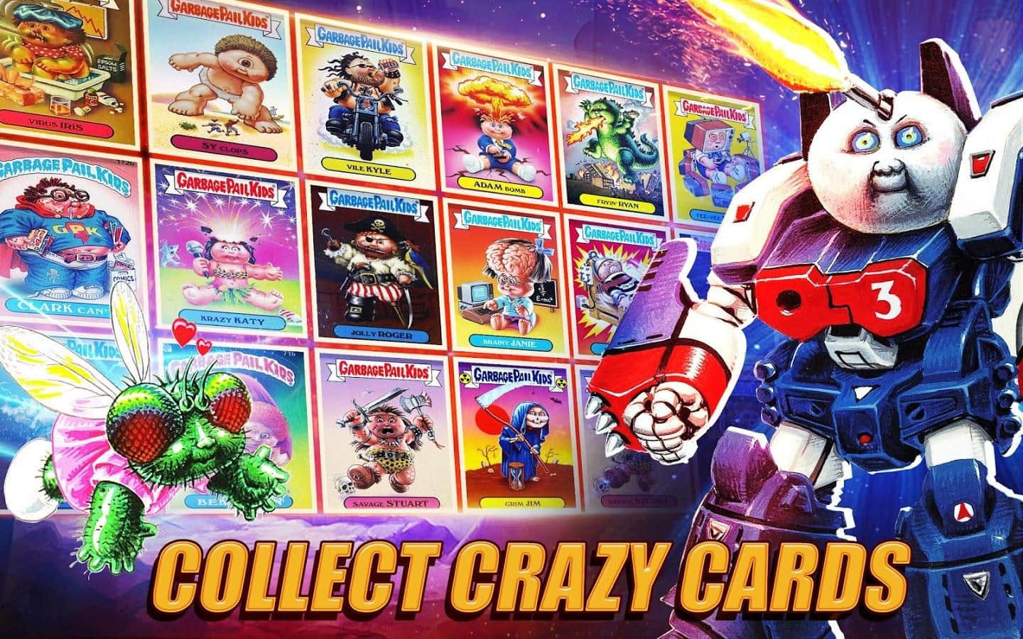 Garbage Pail Kids: El Juego - cientos de monstruos de un bote de basura lo tienen todo. Cartas coleccionables de personajes únicos y extraños (Ali Gator, Stinky, Sally, Tee Vee Stevie, Mad Mike, Dead Ned, Fryin Brian...), que luego van a la batalla PVP. Planifica tu estrategia de cartas con diferentes habilidades y destrezas ("loco por las armas", "golpe penetrante" o "mente de mentes"), armas inusuales, tanques y otras cosas. Cada batalla se vuelve más difícil de ganar y hay un fuerte estrés en cada ataque, pero te da la oportunidad de mostrar tu mejor lado y entrar en la tabla de clasificación.