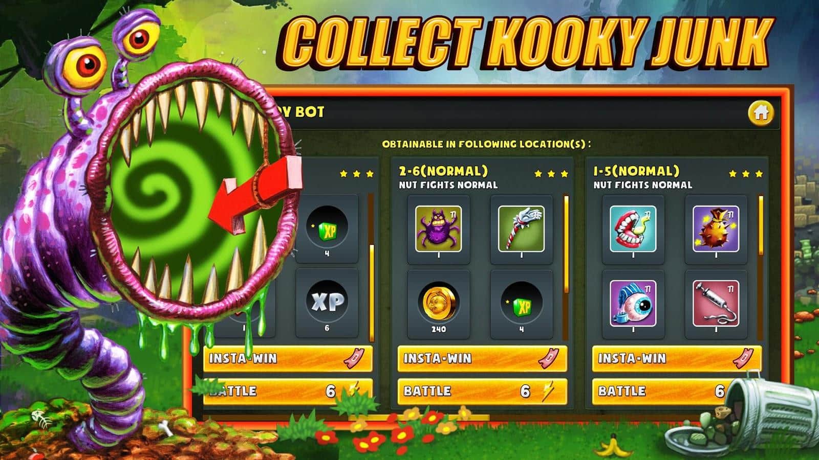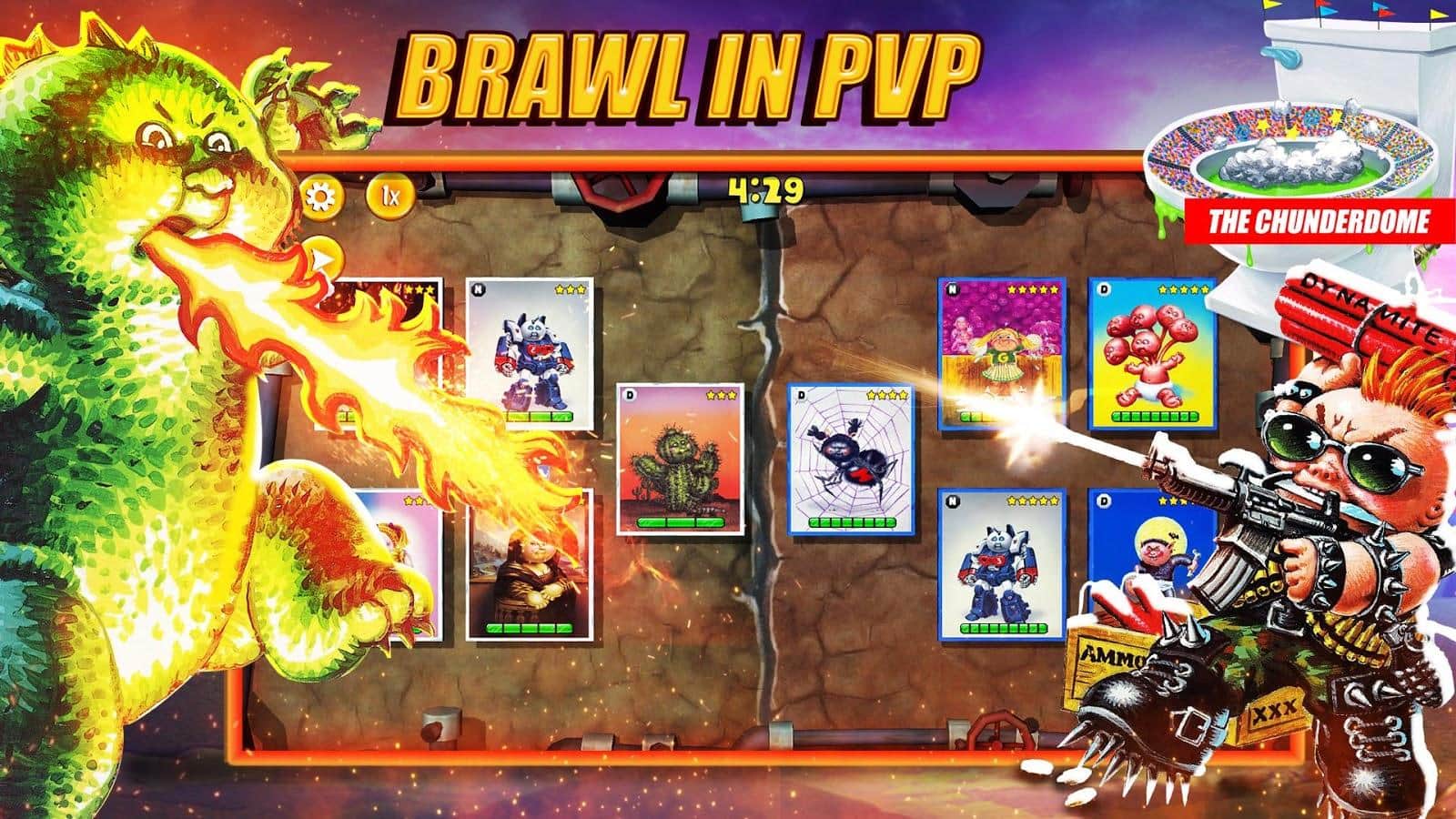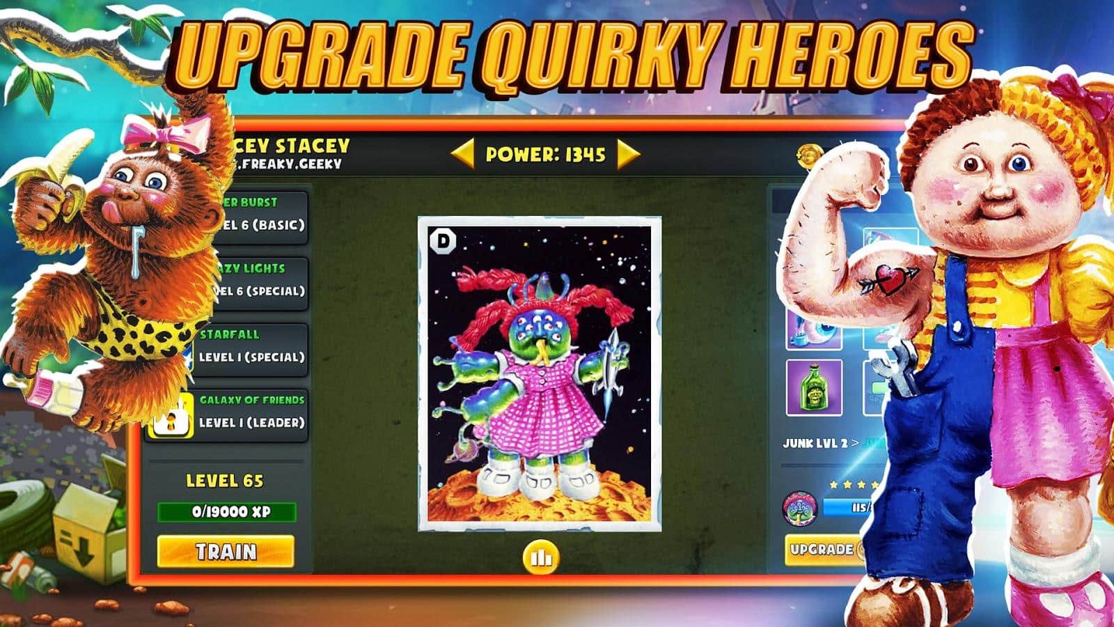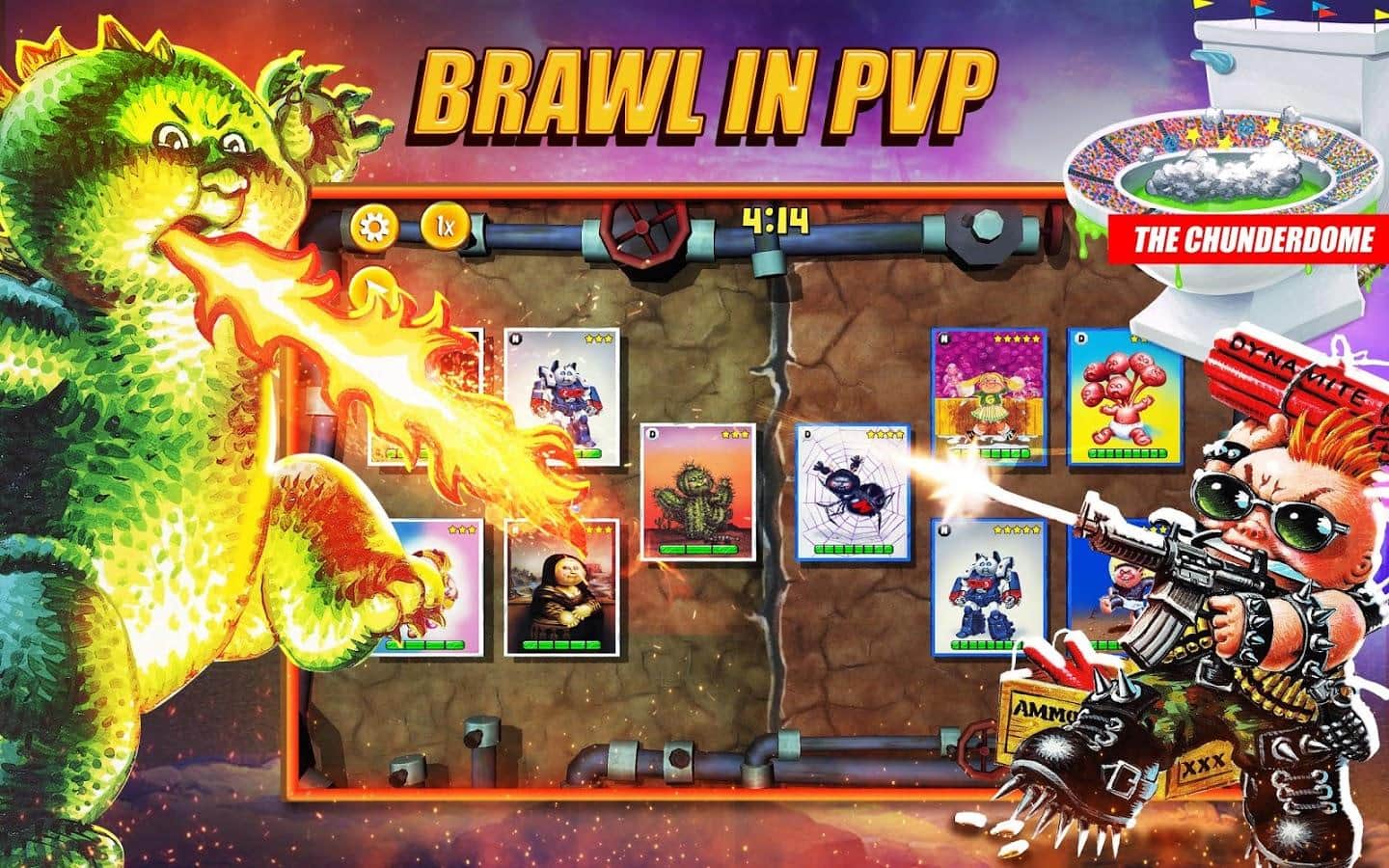 Garbage Pail Kids: El Juego - cientos de monstruos de un bote de basura lo tienen todo. Cartas coleccionables de personajes únicos y extraños (Ali Gator, Stinky, Sally, Tee Vee Stevie, Mad Mike, Dead Ned, Fryin Brian...), que luego van a la batalla PVP. Planifica tu estrategia de cartas con diferentes habilidades y destrezas ("loco por las armas", "golpe penetrante" o "mente de mentes"), armas inusuales, tanques y otras cosas. Cada batalla se vuelve más difícil de ganar y hay un fuerte estrés en cada ataque, pero te da la oportunidad de mostrar tu mejor lado y entrar en la tabla de clasificación.