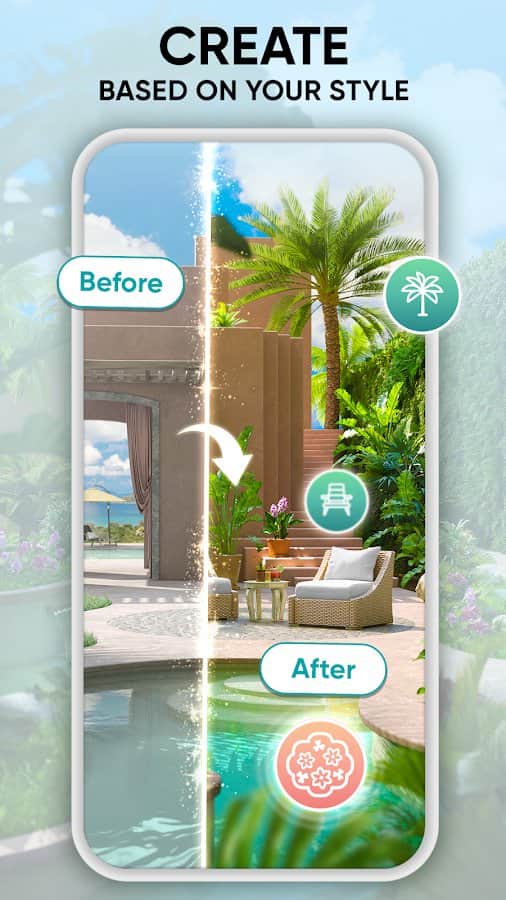 Garden Joy: Juego de Diseño - Transformar jardines ordinarios en verdaderas obras de arte. Llénalos con plantas lujosas, muebles elegantes y elementos decorativos únicos. Decora los patios de casas que van desde cabañas de playa hasta chalets de montaña, y participa en desafíos diarios regulares. Participa en eventos multijugador y compite para crear impresionantes ramos. Gana fichas completando tareas y gana recompensas. Los eventos estacionales abrirán nuevas oportunidades para interactuar con otros jugadores.