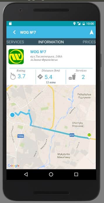 El servicio se proporciona utilizando la herramienta de búsqueda de mapas de Google. Haz clic en la gasolinera - obtén una descripción detallada de los servicios.