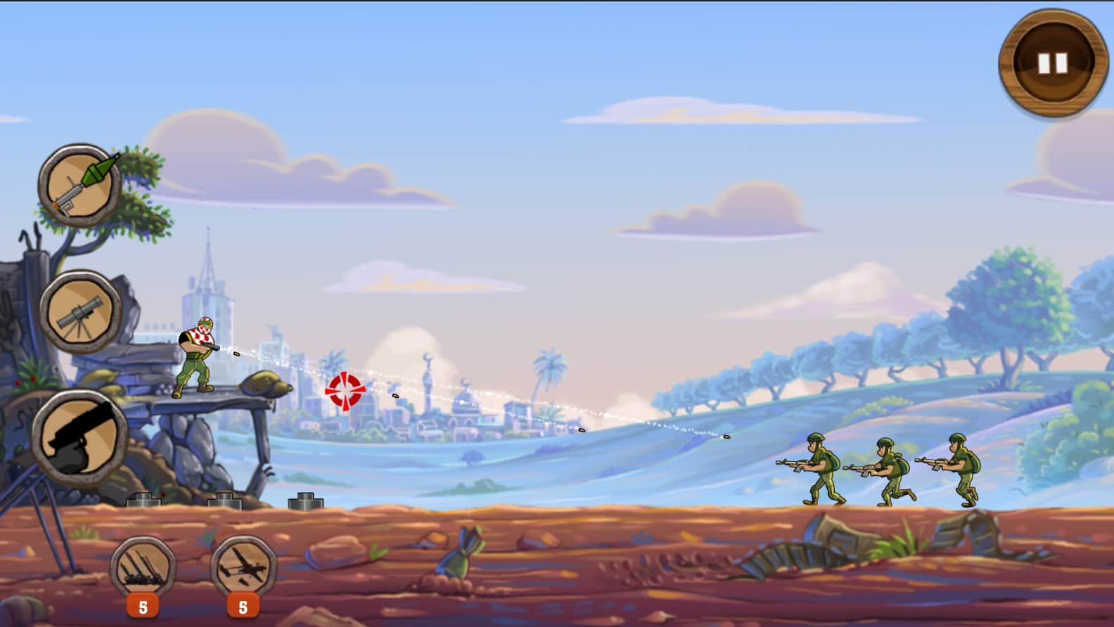 Gaza Man 2.0 Full - versión premium del shooter horizontal con elementos de defensa de torres, la historia nos lleva al Medio Oriente en un pequeño pueblo. Según la historia del juego, en las calles del asentamiento un niño pequeño jugaba al fútbol, pero había hombres armados abriendo fuego, asustando a los civiles; el niño aún fue capturado. Pero nuestro héroe, y este es Gaza Man, fue testigo de todo el evento y, por supuesto, no iba a tolerar el terror, bien armado y ocupando una posición conveniente, Gaza Man comenzó a destruir a los invasores. Gaza Man es una mezcla entre un shooter y juegos de defensa de torres, los creadores del proyecto realmente trabajaron y lanzaron un buen juego de acción.