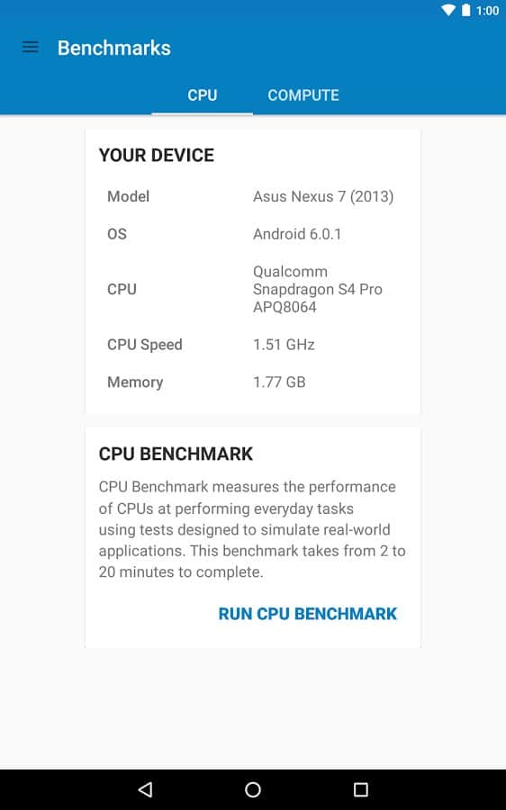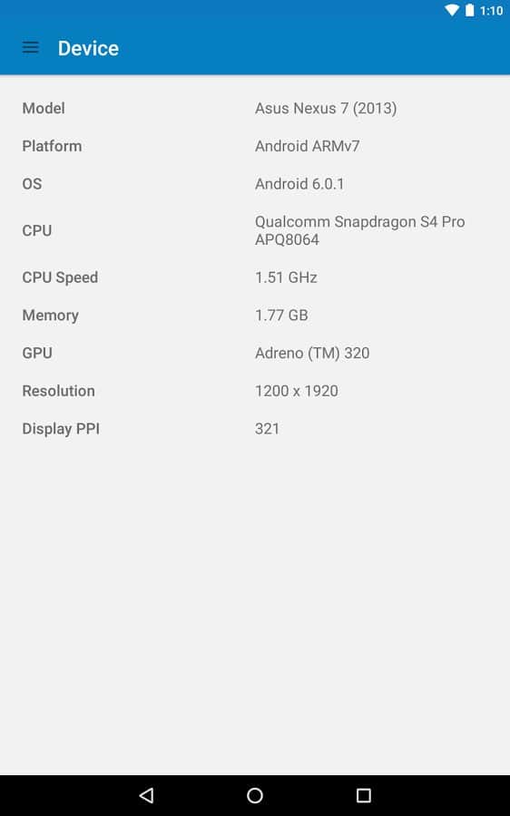 Geekbench 4 - Esta es la nueva versión del querido probador de capacidad para smartphones. En esta versión, los desarrolladores han rediseñado la aplicación y agregado muchas nuevas pruebas. Por alguna razón, la prueba de batería fue eliminada en esta versión. Pero en su lugar se añadió una nueva calificación y ahora conocerás el poder de tu CPU y GPU con mucha precisión y en detalle. Así que tuve la oportunidad de medir la potencia en modos de un solo núcleo y multinúcleo. Se corrigen muchos errores, y el trabajo en la nueva versión aún está en curso.