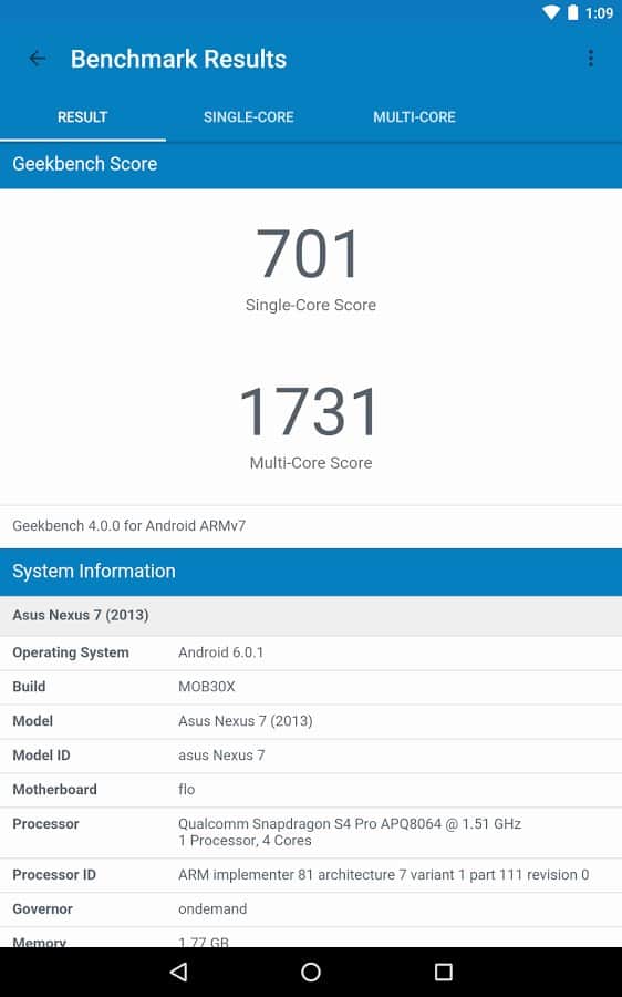 Comentarios a Geekbench 4 en Android